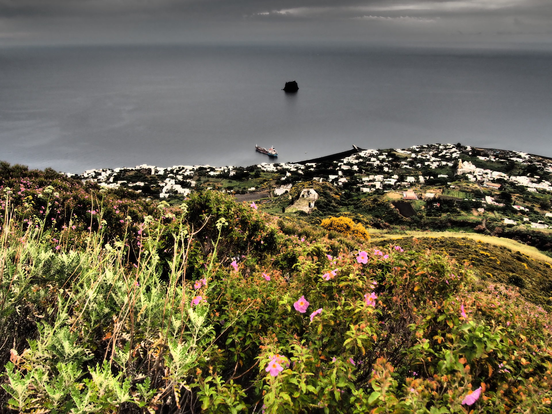 Despite the volcano’s threatening presence, or maybe because of it, Stromboli keeps on attracting people willing to live here. It’s not difficult to imagine why; white-washed villas, colourful alleyways, ever present bougainvillea and the stark black beaches with volcanic rock formations all make up for pretty postcard pictures. But life on the island is tough: food and drinking water have to be ferried in, there are no roads and therefore no cars, buses or trains. Neither are there lights on the streets at night, which positively makes star-watching and eruption-watching into a fine experience.
