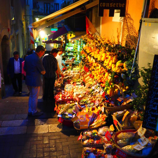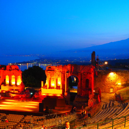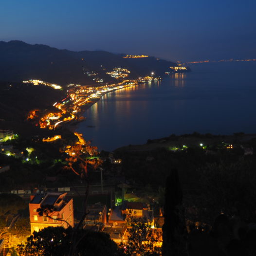 Once you walk the little alleys that are sides with colourful houses, charming balconies and flower you’ll indeed understand why people are charmed by the atmosphere. Taormina is already lovely by daylight, but in the evening the town’s beauty grows to real mythical proportions: the town strategical location offers some splendid views over the turquoise water of the Naxos bay, vineyards, the majestic Mount Etna in the background and the Ionian coast. While staring in the distance on a balcony or observation point it’s like you’re delightfully trapped in a painting of Lawrence Alma Tadema.
