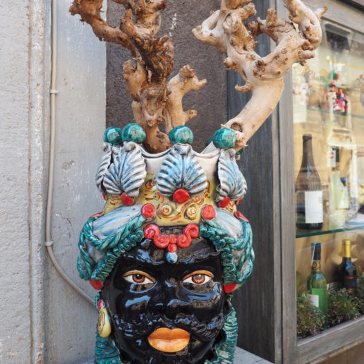One of the most popular artistic elements of Sicily is ceramics. And while traveling Sicily, I don’t think there’s any city more into that trade than Caltagirone. Walk through the streets, and you’ll notice colourful tiles, robust heads and other ceramic items around every corner.