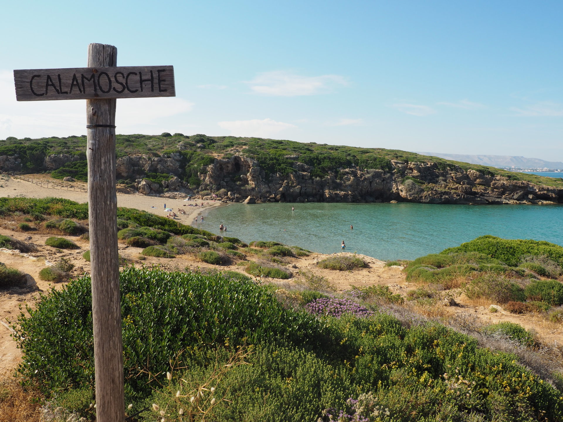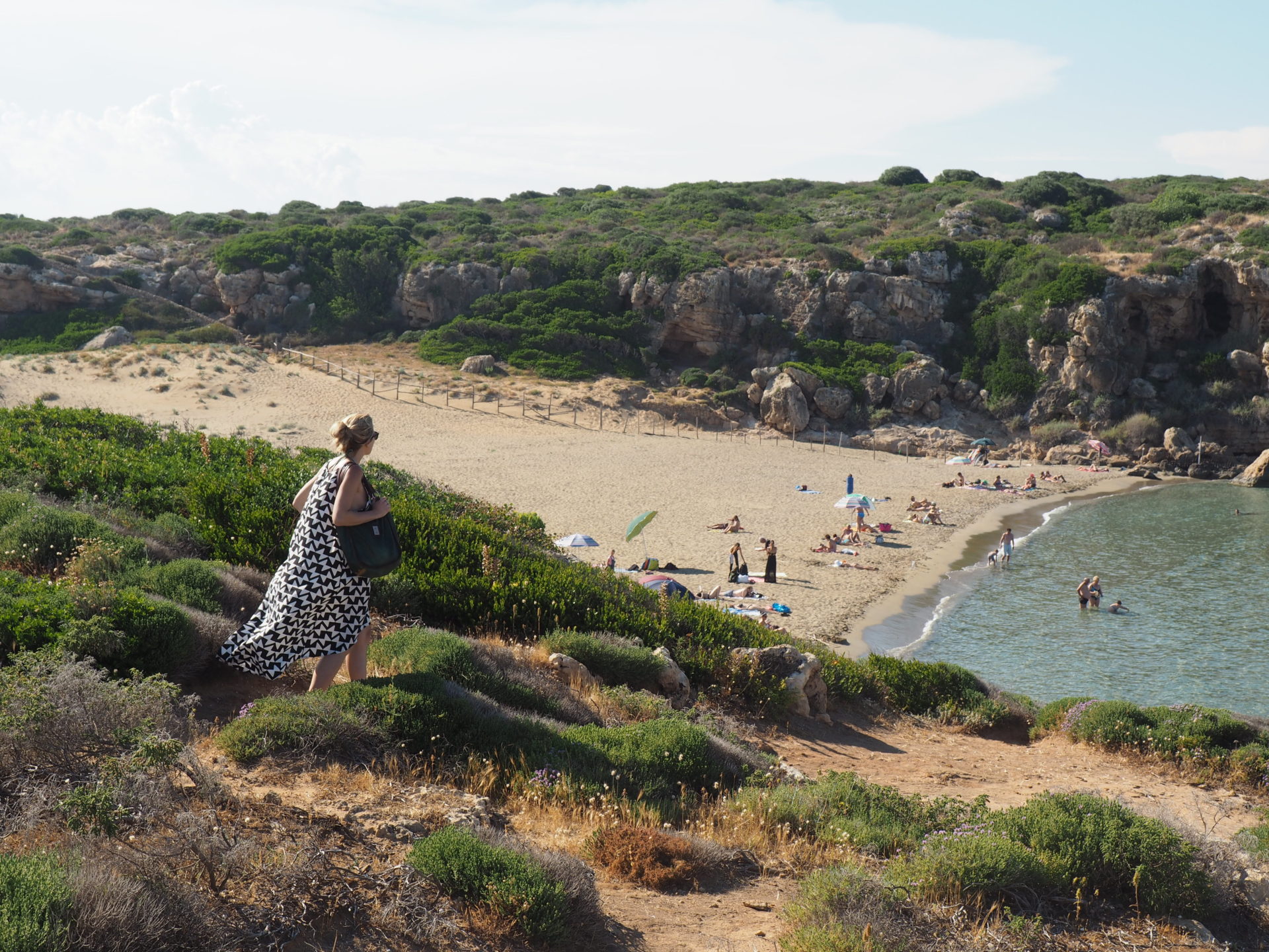 First and foremost: it’s not easy to reach Calamosche. The drive to the car park is a bit of a hassle, since the roads are narrow. Once parked, the beach itself is around a 25 minute walk from the entrance. Personally I thought Calamosche was really worth the trip. The beach is very hidden, with no cars or cement blocks surrounding it and therefore a welcome contrast to the commercial beaches in the area. We were there in the beginning of June in the afternoon, and there weren’t that many people around. But perhaps during July and August the beach can be quite busy, ye be warned.