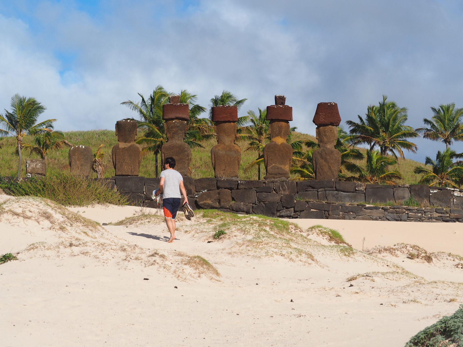 In the second half of June another dream came true when we set foot on Easter Island! Also named ‘Rapa Nui’ by the Polynesian, this tiny island is nothing but a drop in the Pacific Ocean, but such a magnificent one and famous for its enormous moai. We dwelled on the island for five days which is quite a lot of time if you consider Easter Island’s size is only 164 sq km (63 square miles). We discovered that the weather does change super fast in here, sometimes it even felt more like we were driving around Ireland rather than a Polynesian island. But on the plus side, from time to time we could capture both rainbows and moai!