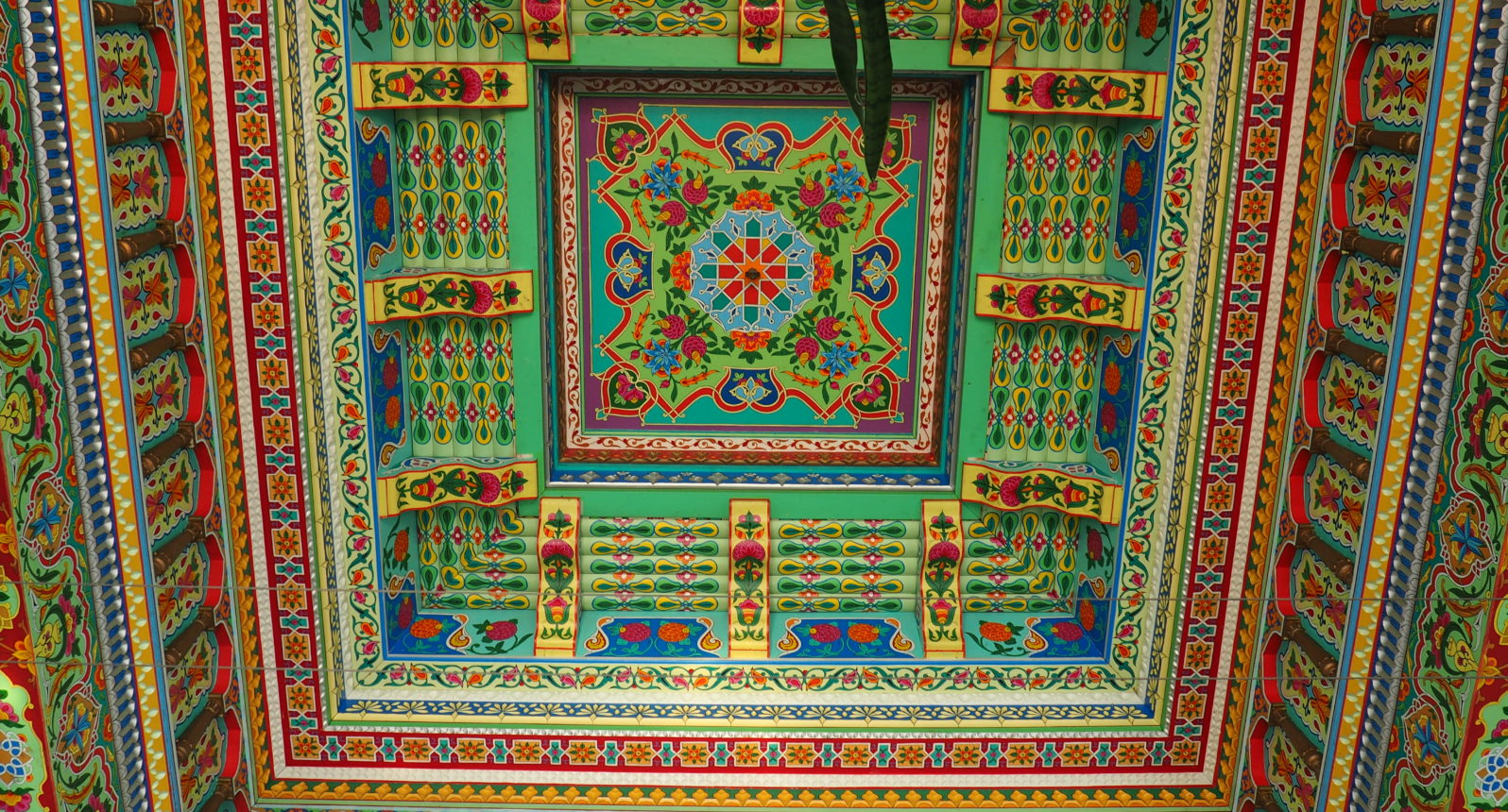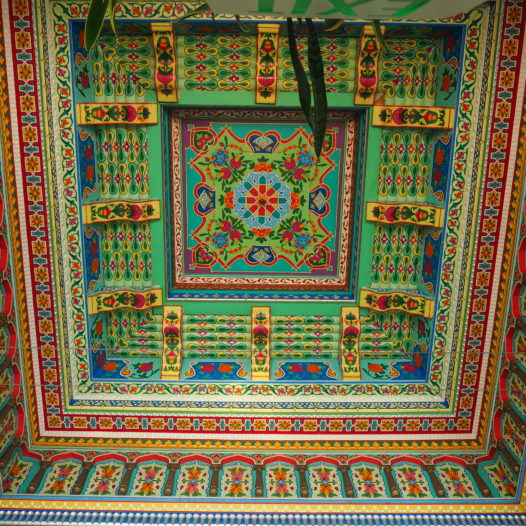 The looks of the place are just magnificent – both inside and out. You’ll find tiles made in Tajikistan, gorgeous carved columns, painted beams and a lovely little pond.
