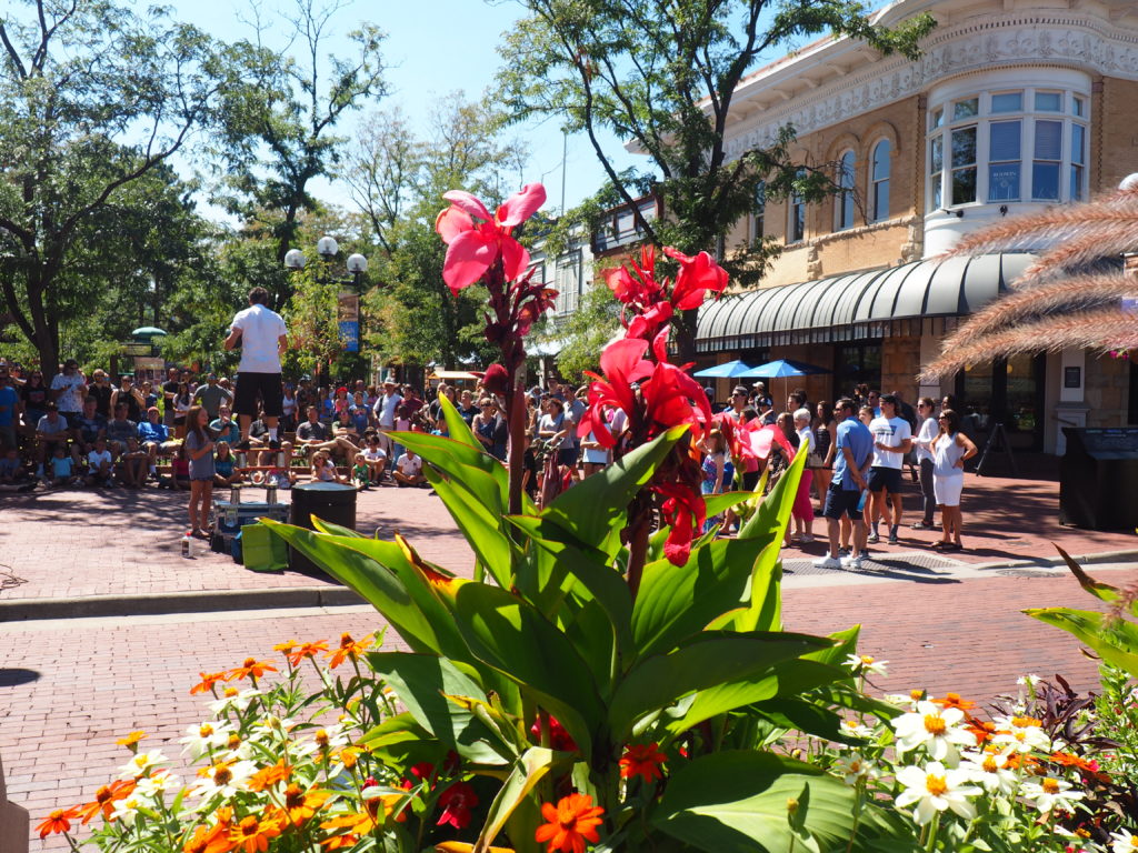 You” find an eclectic mix in here with lots of home-made ice cream shops, benches for people watching, stores for outdoor gear, gorgeous flower banks, a shop with fossils from the rockies, lots of street performers, a shop with Peruvian alpaca sweaters and Colorado souvenir shops.