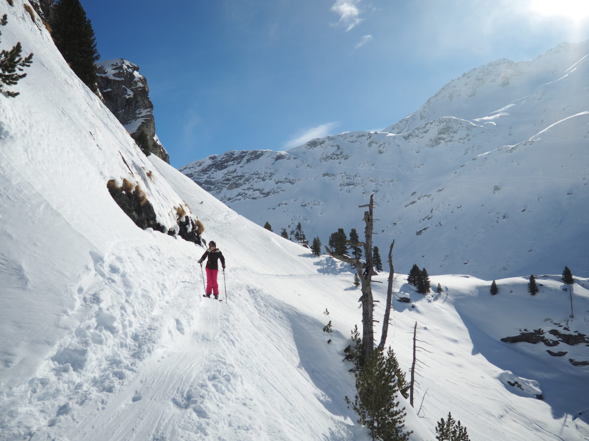There where few people on the slopes during our trip – especially the first day it often felt like we entered some private ski areas – and apart from that joy, we took doggie Chapo with us too. It was the first time for our tropical stray to experience this huge amount of snow and she clearly loved it, as she was waiting in the morning in front of the window to get out and play (‘don’t eat the yellow snow Chapo!’).