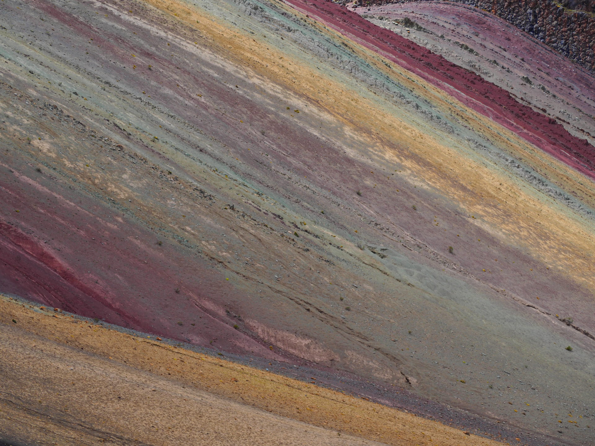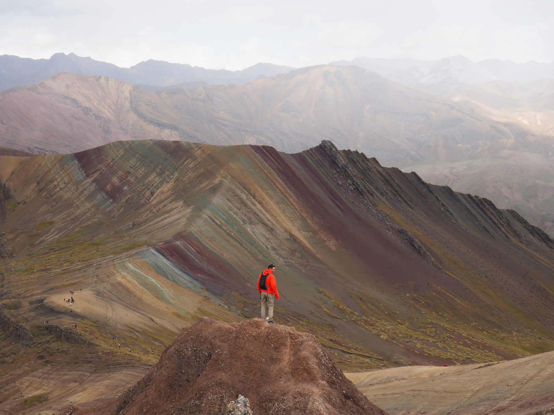 WHAT: Visiting the rainbow mountain of Palccoyo; an alternative trip to the touristy mountain of Vinicunca in the same area. WHERE: The mountain range is a 3,5 hour drive from Cusco one way. HOW LONG: A full day. We were supposed to be picked up at 06:30 am (but we experienced a Peruvian delay). We returned at Cusco around 05:30 pm, luckily with little traffic jams on the way around Cusco. The hike itself was - without the viewing stops- about 45 minutes. Our actual time at the rainbow mountain was something like 2 hours. HOW MUCH: It would depend on the agency, but more or less 90 PEN per person. This includes a lunch, admission to the area (10 PEN), transportation and a guide along the way.