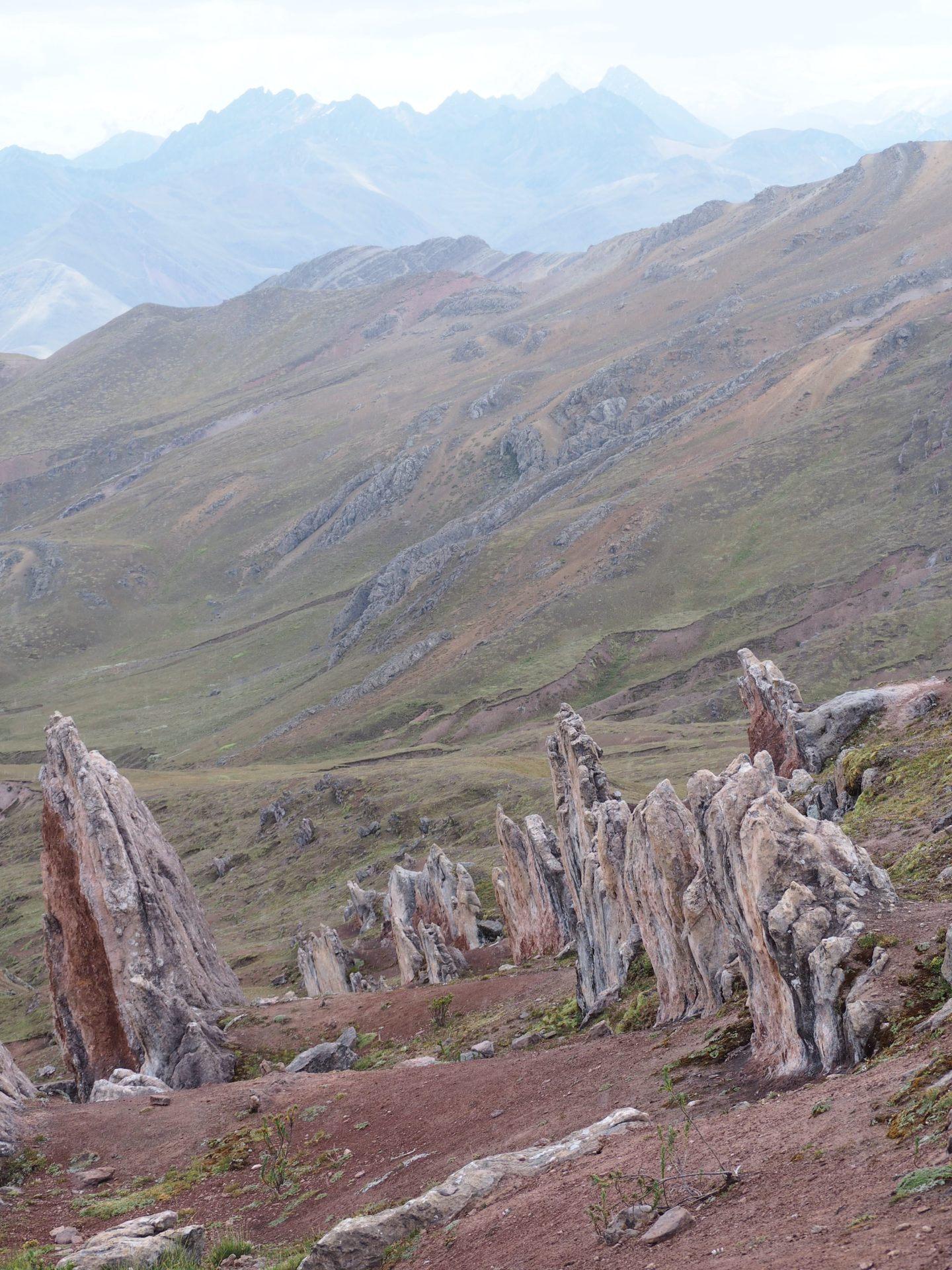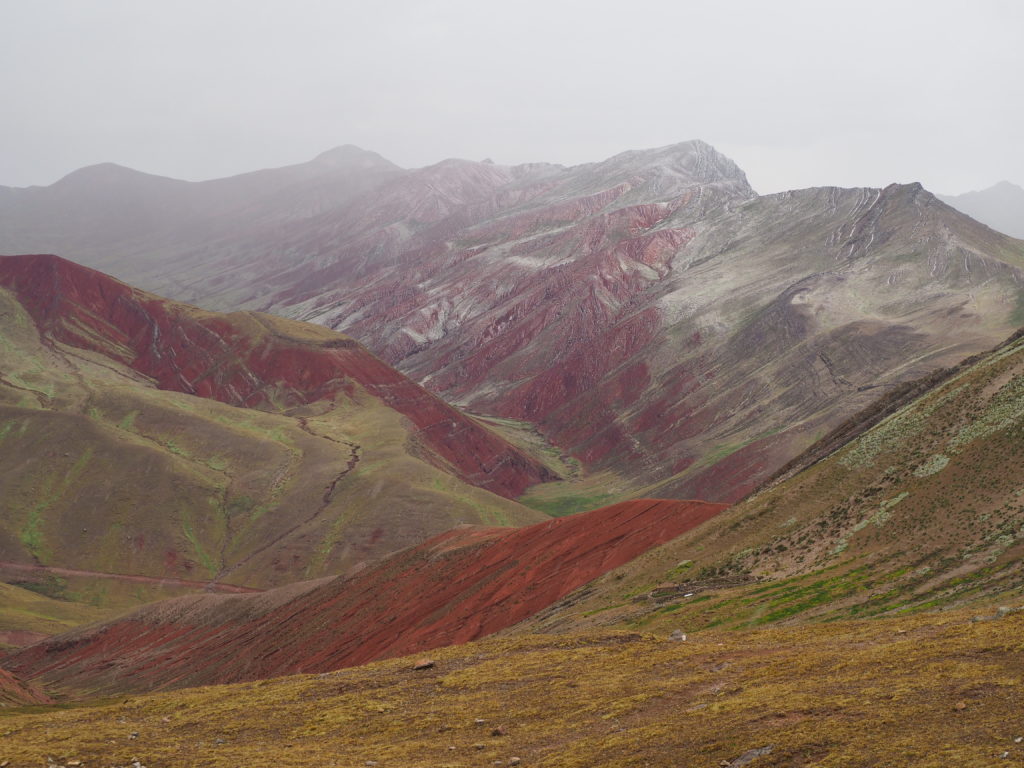 The walk grants some spectacular views of the range. Every 100 meter another gorgeous red or green valley or unique rock formation is to be seen. This is another advantage over Vinicunca; you won’t just see one beautiful multi-coloured mountain, but many.