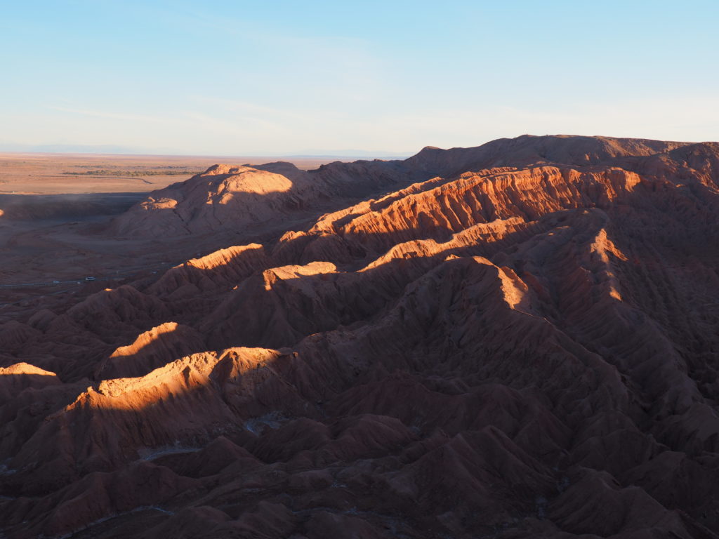 Try to get there around sunset, as the colours on the Valle de la Muerte will change by the minute.