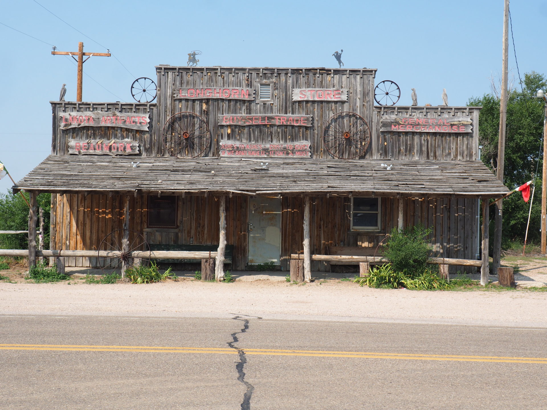 The area still has that wild wild west feeling. Most of the buildings in the direct area around Badlands are in decay and give a glimpse into the past. I’m mean – just look at it. ↓ The village of Longhorn – almost a ghost town – could have been pulled out straight of an old western.