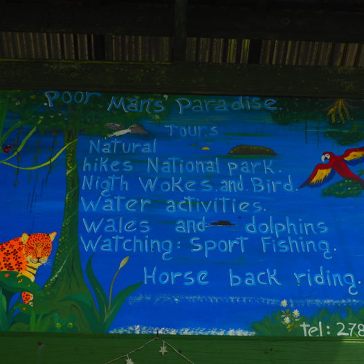 The only obstacle (apart from mosquitos and possible rain) is a river crossing after somewhat 1,5 hours. We tried to go through the river, but it simply is too deep. So save your bags and pay that dollar at the upwards canoe crossing. You have to blow the whistle that hangs out on a tree and before you know it; a Tico on the other side will pick you up. Such a fun experience! If you need a break, there’s a small bar on the other side too.