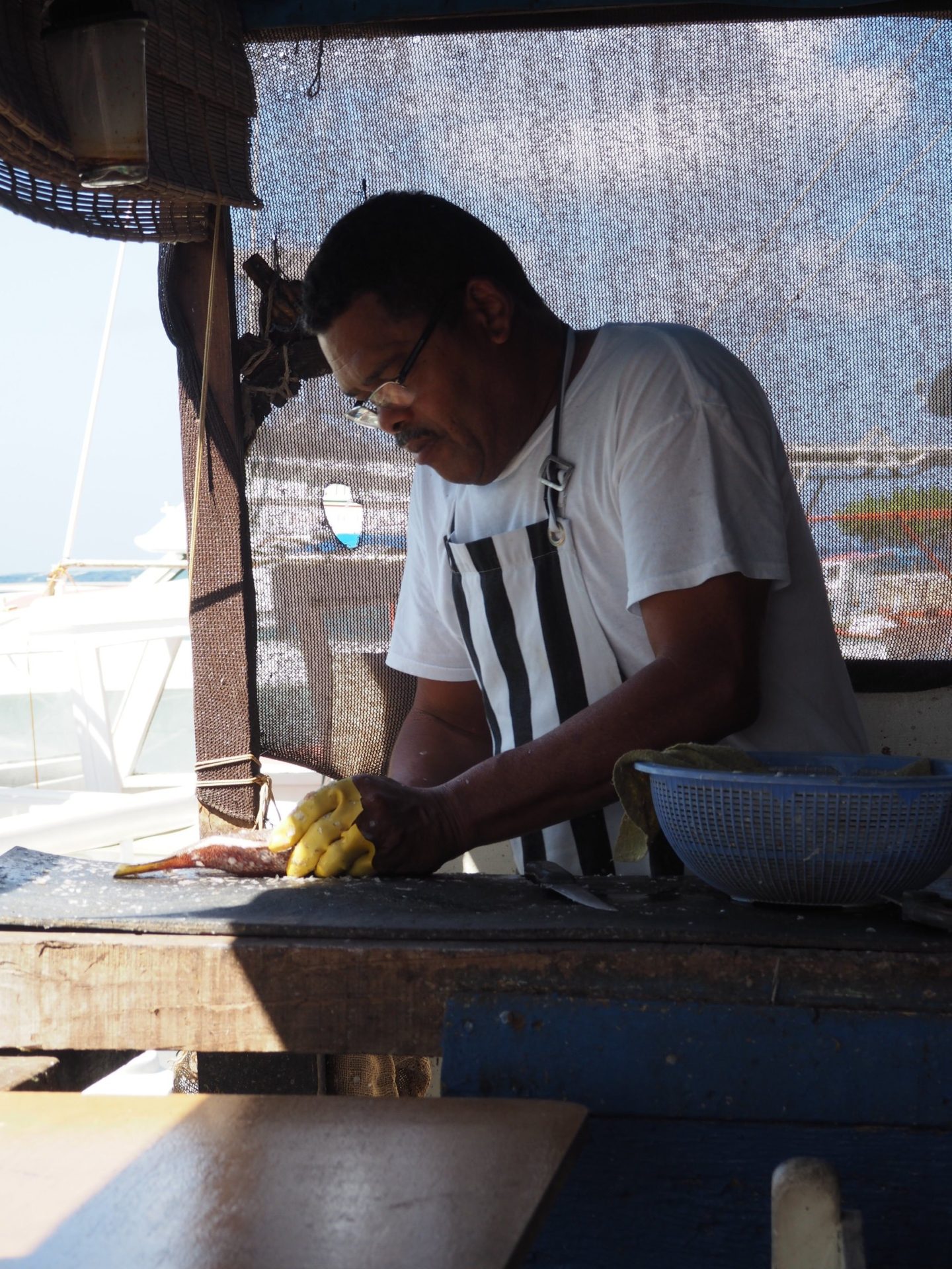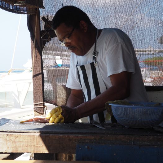 I was orchestrated to a seat next to the water and one of the owners told me was on the menu for the day. As you see local fishermen bring in their catch you kind understand there’s no need for printed menus in here! Next to my table someone was cleaning the fish the guests are about to eat. Snappers, dorados, wahoos, lion fishes.. all of them come with polenta, rice, french fries and a salad. And a drink of course – all of that for 25$.