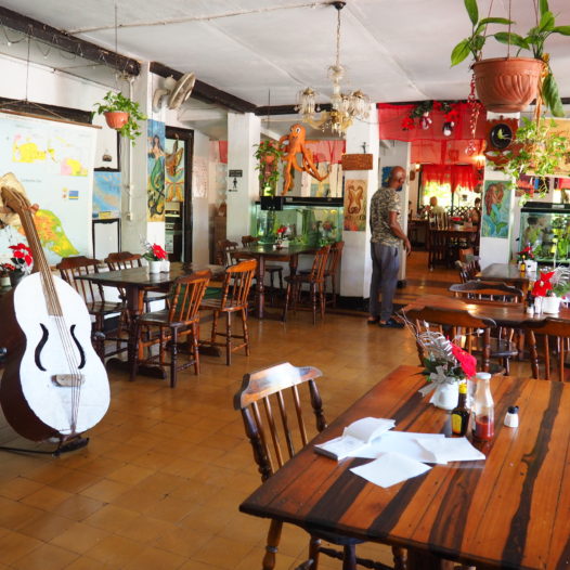 As you wait for your meal (expect typical Caribbean dishes) you’ll be entertained with the many finches that fly from one feeder to another. The food may not be as exciting as the previous restaurants (although in case you’re eager to try iguana… it might), but it’s the relaxed atmosphere that makes this place worth a visit. If only for the delicious coconut ice cream!