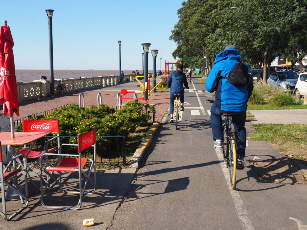 We started the day cruising through Palermo Soho, next we cycled along the Rosedal de Palermo and drove all the way up via de Lago de Regatas to the impressive Parque de la Memoria. A fine spot to take a break, while Luana told us some stories about the military dictatorship in the 70s, its political consequences and the young people that fell victim to this regime.
