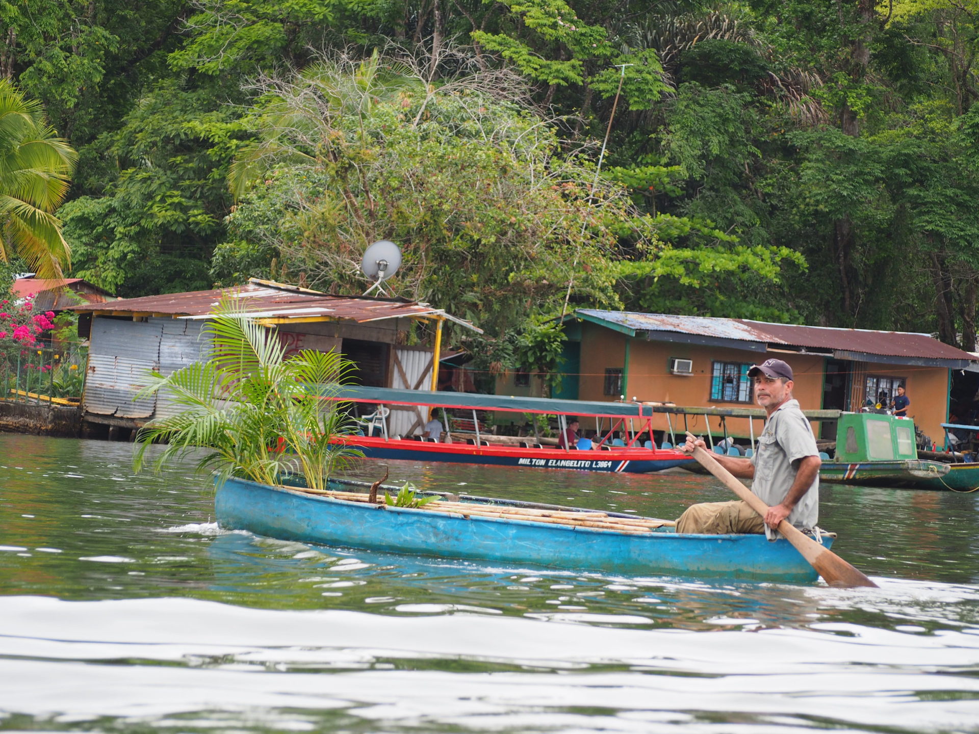 For now, my sisters and I are here just being visitors. To see a wide variety of animals we decide to join a canoeing tour the next early morning. With sleepy heads at 6am we buy our tickets for the Tortuguero National Park. Afterwards we step into our canoe, where we’ll be seated for the upcoming three hours under the supervision of Luis. We know getting up at this early hour is worth it; after all most animals are there to be seen at dawn. Luis is in the mood for today too, since the sun is out there for us after a night of heavy rain.