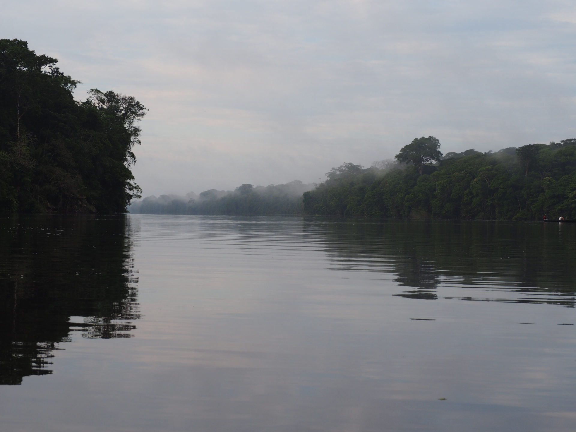 “Come on, come on, touch it!” My sister, in front of me in the boat, is being encouraged by Luis to feel the tail of the caiman, which is floating right next to our canoe, in specific her. Lucky bastard. It leaves her in doubt for a moment. “No no, he won’t react to that”, stresses Luis. Several unpleasant visions pop up in my head, but indeed, the crocodile doesn’t seem to care at all when she carefully touches his armored skin a couple of seconds later.
