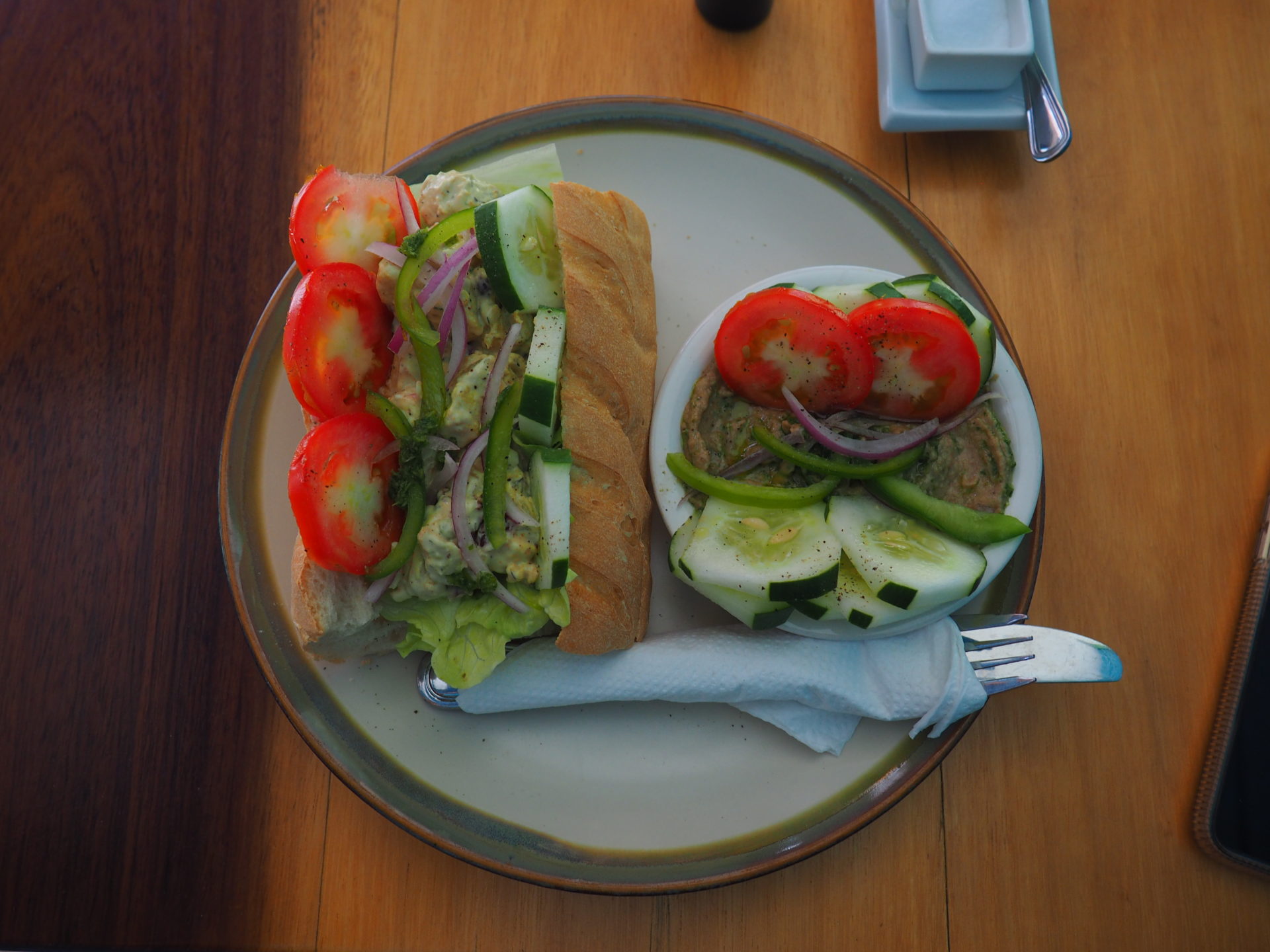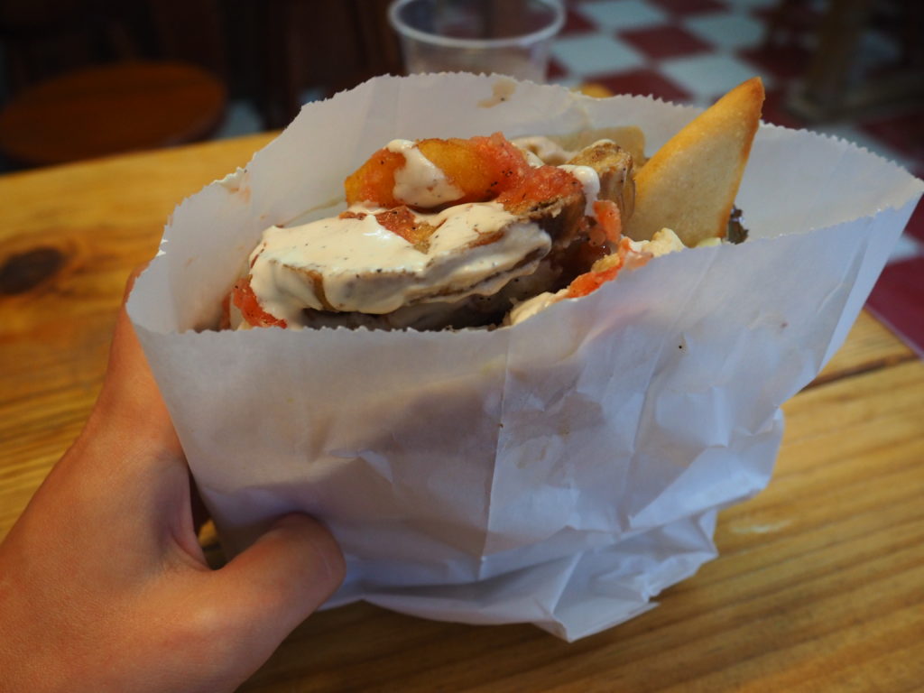 It’s slightly weird, stepping into this little shack. With all the jewish music and decoration I had the feeling that I suddenly was in Israel. But the change was much appreciated. In case you need a (cheap) break from all of the seafood, this place will be your salvation for real.