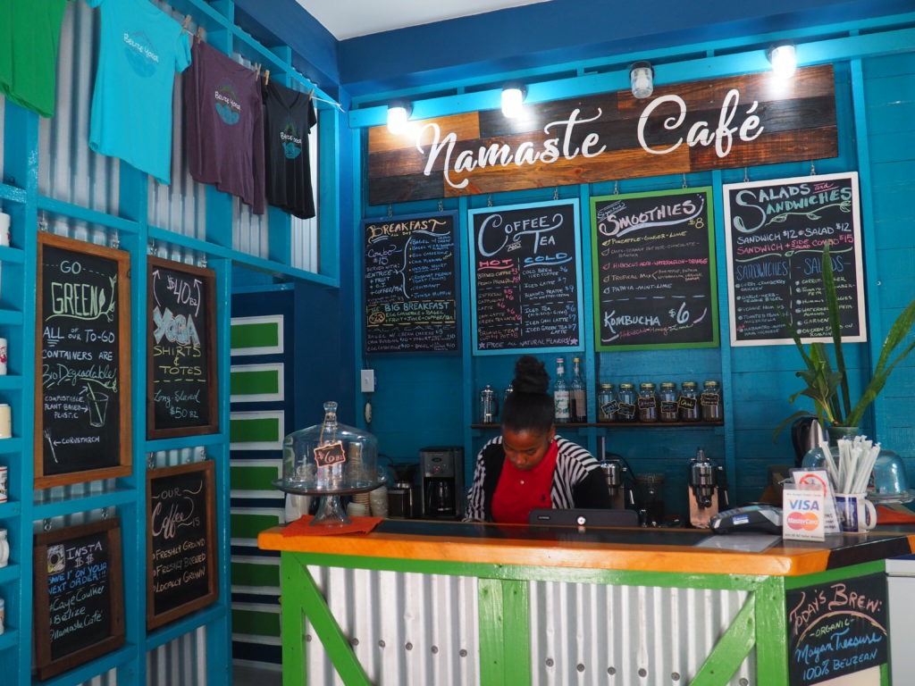Namaste has great lunch combo’s (a sandwich with a salad or hummus) for 15 BZD ($7,50 USD) and really lovely smoothies on top of that. Open ’til 4 pm.