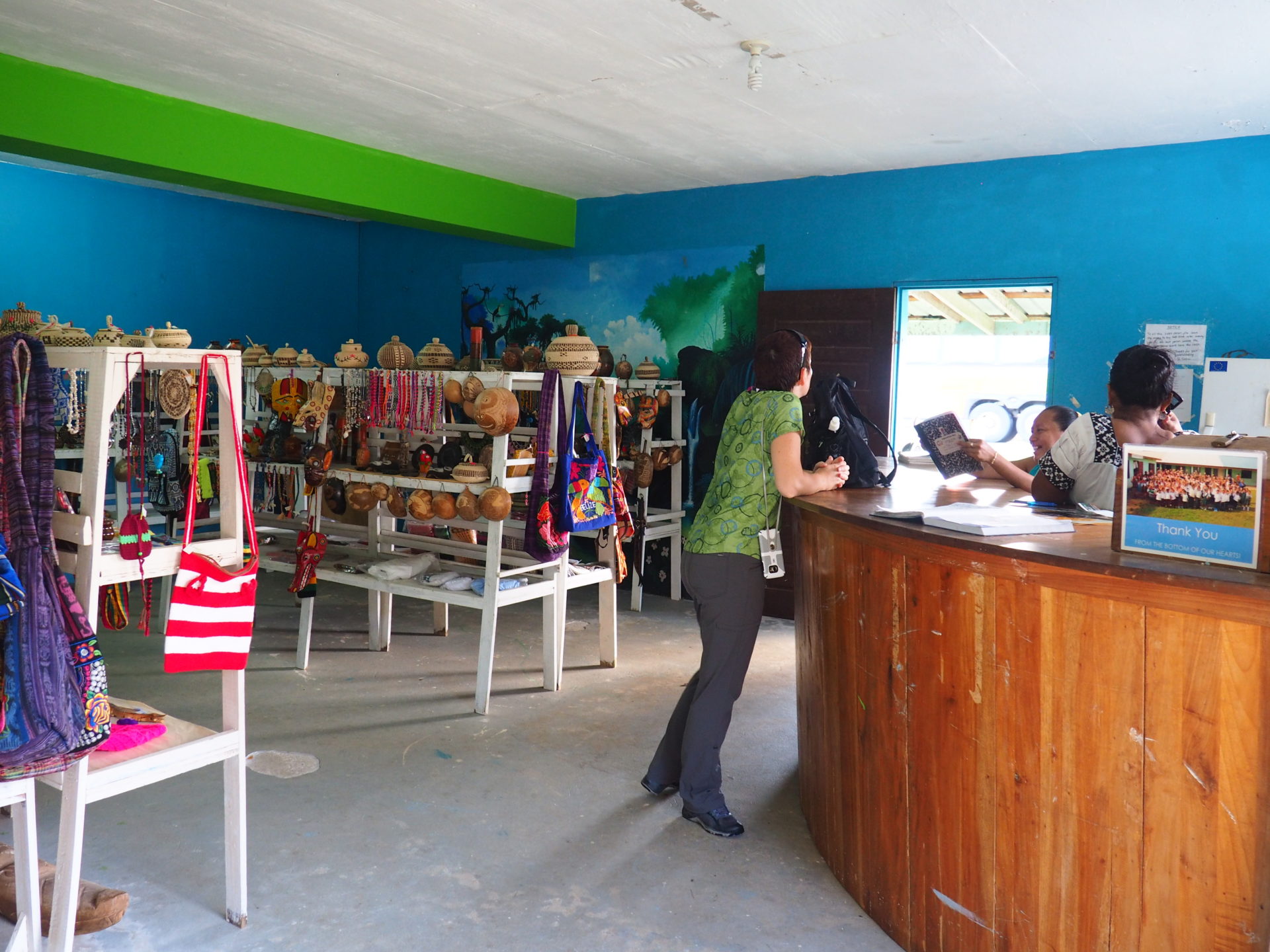 Everyone is required to stop at this Maya Center – the green building at the corner – to check in and buy the ticket ($10,- BZN or $5,- USD). However, now that you have your ticket, you’re still not at the actual entrance of the park! There’s another 6 km to be conquered from here before you reach the second park entrance. Don’t throw your ticket out either. They’ll check it again at this second entrance.