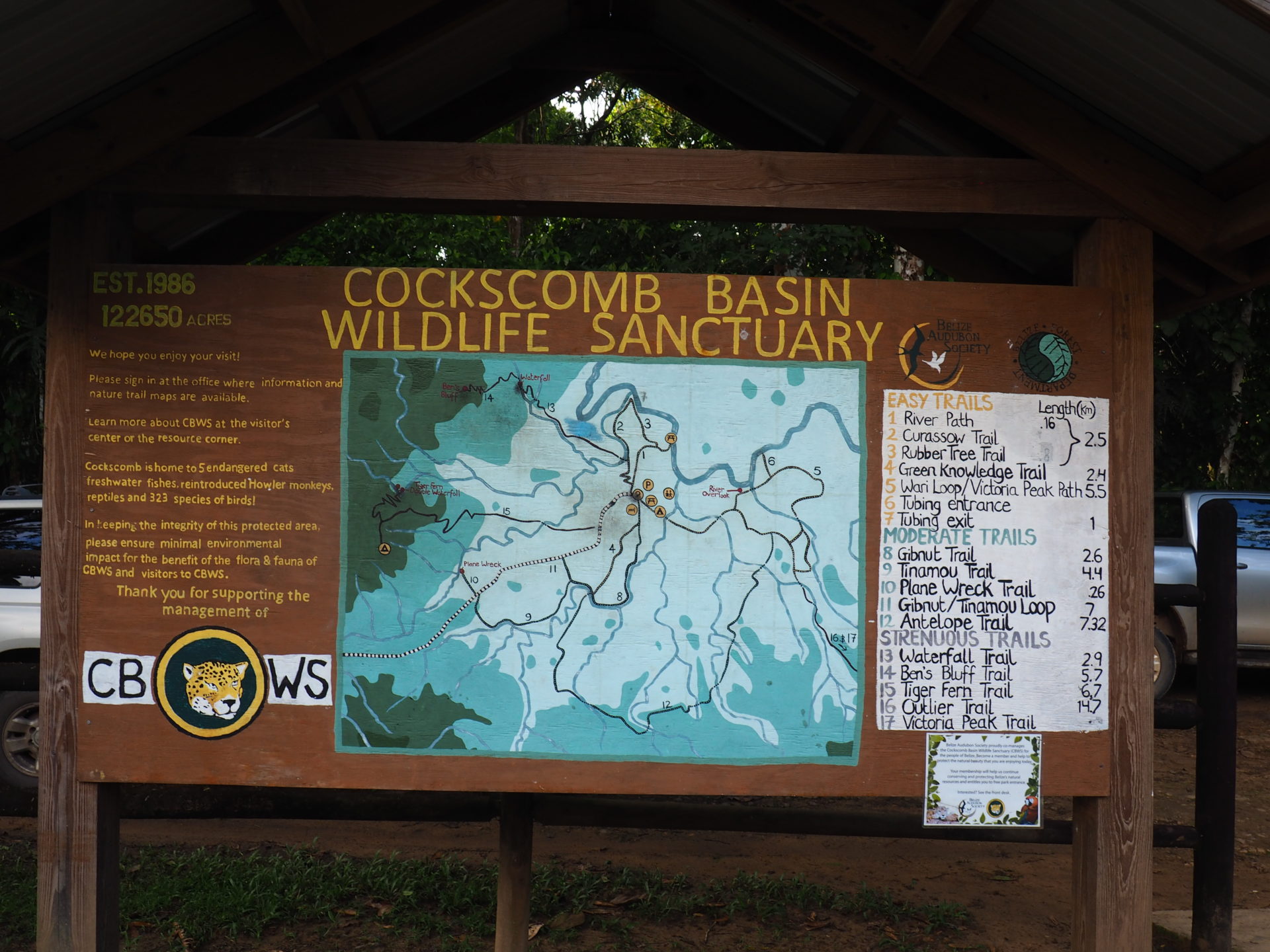 WHAT: A hike through the Belizean jungle of the Cockscomb Basin Wildlife Sanctuary (almost named Jaguar Reserve) WHERE: The sanctuary is located right in the middle of Belize. The reserve can be entered from the main Belizean highway, 6 km west of the Mayan Village Center (see map below) HOW MUCH: Admission to the reserve is $10,- BZN or $5,- USD. The costs of the drive towards the area depends on what your method of transportation is (hitchhiking, bus, taxi). Taxi's are more or less $80,- BZN back and forth. HOW LONG: There are a LOT of trails so you could basically hike there the entire day. We chose to do three trails
