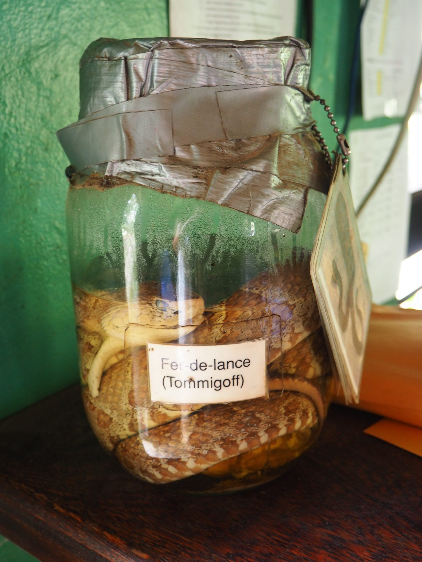Look at this creep for example! ↓ That’s how I prefer them, those aggressive fer-de-lances (terciopelo)! Like a freakie in a bottle. I do wonder how they caught it though…