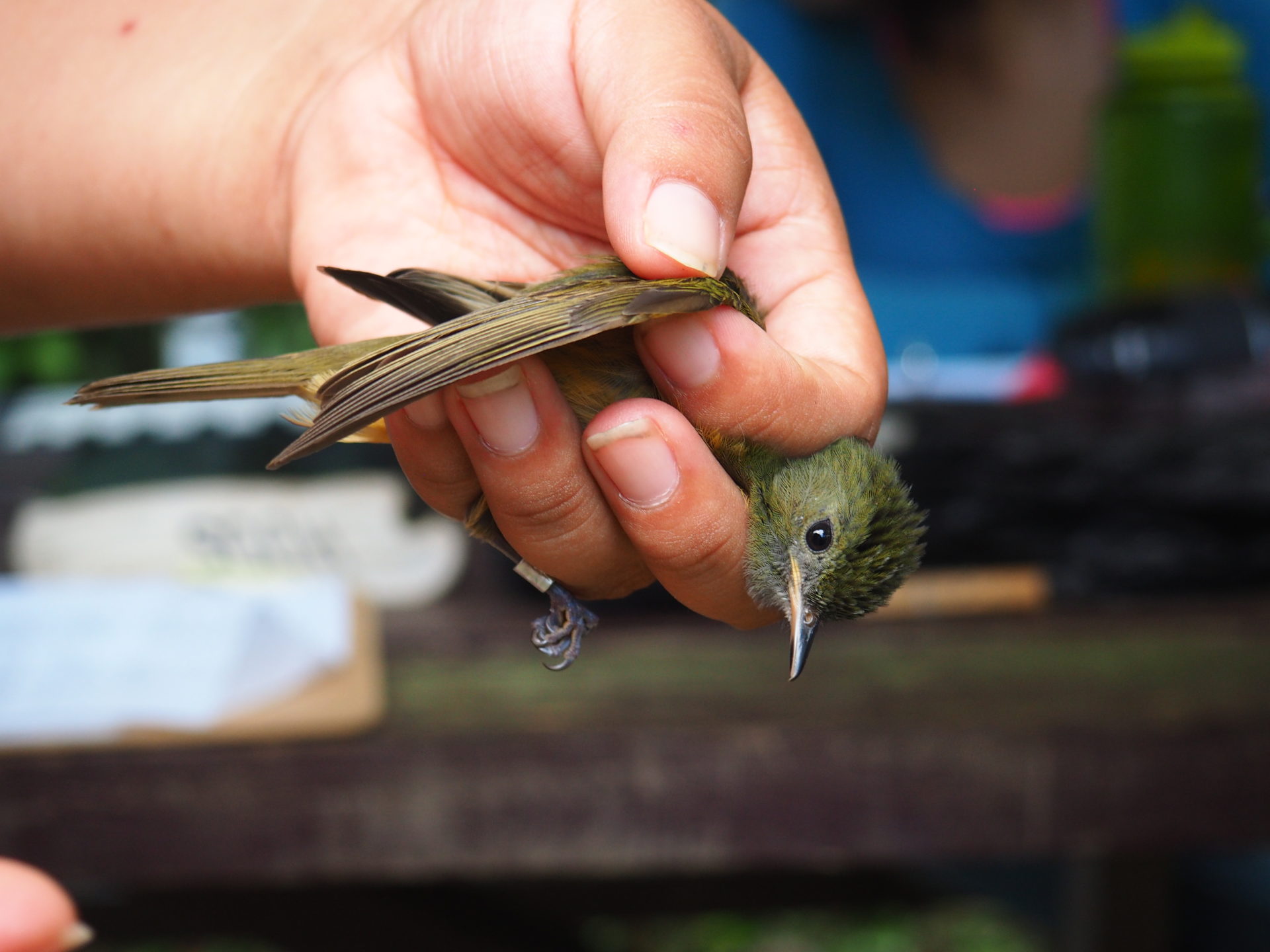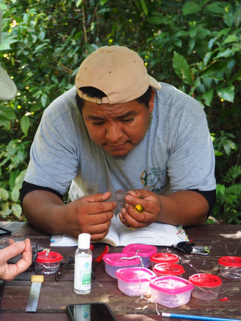 Every half an hour one of the rangers checked all of the fifteen giant nets to see if they’d been able to catch something. Back at the station he noted down all the information regarding the bird before he banded and released the little fellow again.
