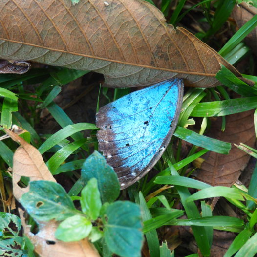 Anyway, albeit a bit wary after this unexpected meeting we continued our way towards the river. We didn’t came across other surprises apart from quite a few lovely butterflies: both many postman butterflies and blue morphos.