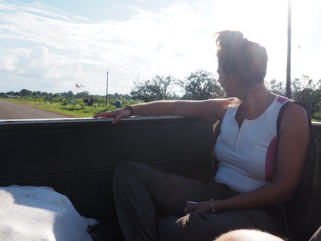 In the back of the truck together with a big pack of oranges we had the luck to go all the way to Hopkins. But even if you’re left at the junction of Hopkins and the main road, I’m pretty sure you can easily catch another ride back into town.