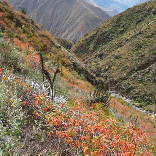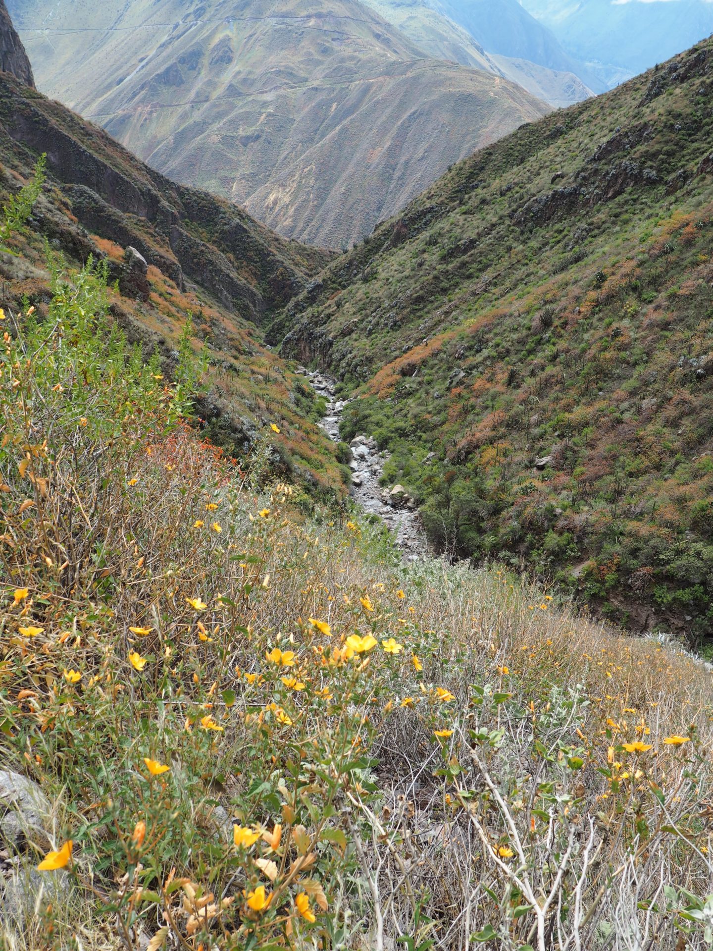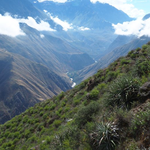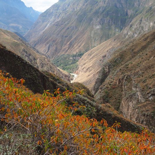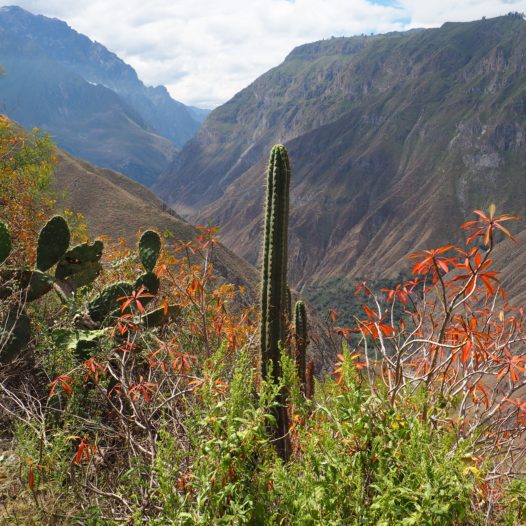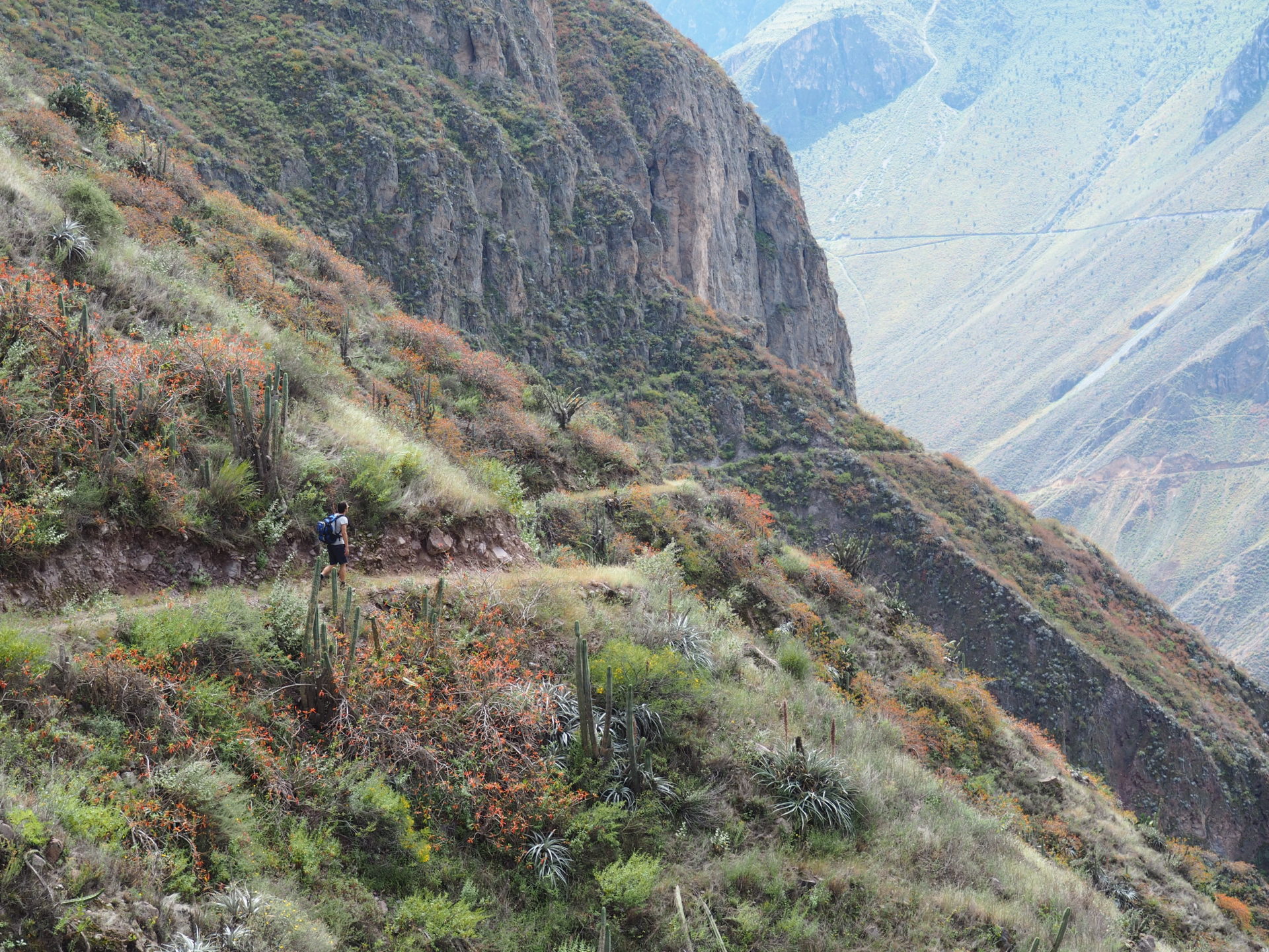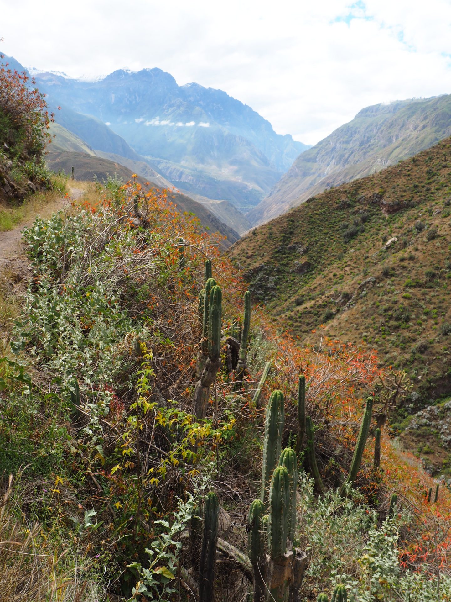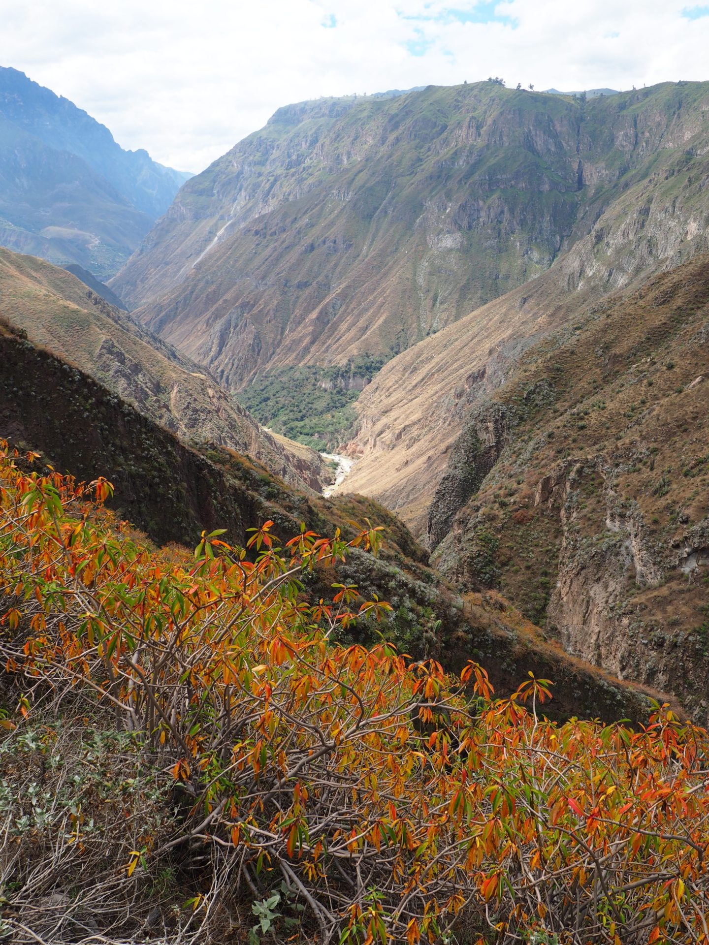 The landscape is very diverse, greener than I expected it to be and just keeps on changing with every bend you follow. Though some of the paths are very steep it’s all worth the effort. Fields of cacti, snow capped mountains in the backdrop, hot springs next to the river that runs amidst it all, an epic waterfall that suddenly springs from the rocks, stunning miradors, tiny villages, flowers all around, condors flying above your head, herds of llamas and alpacas; what’s not to like in here. In this canyon the journey really is the destination itself. Just look at the pictures and judge yourself!