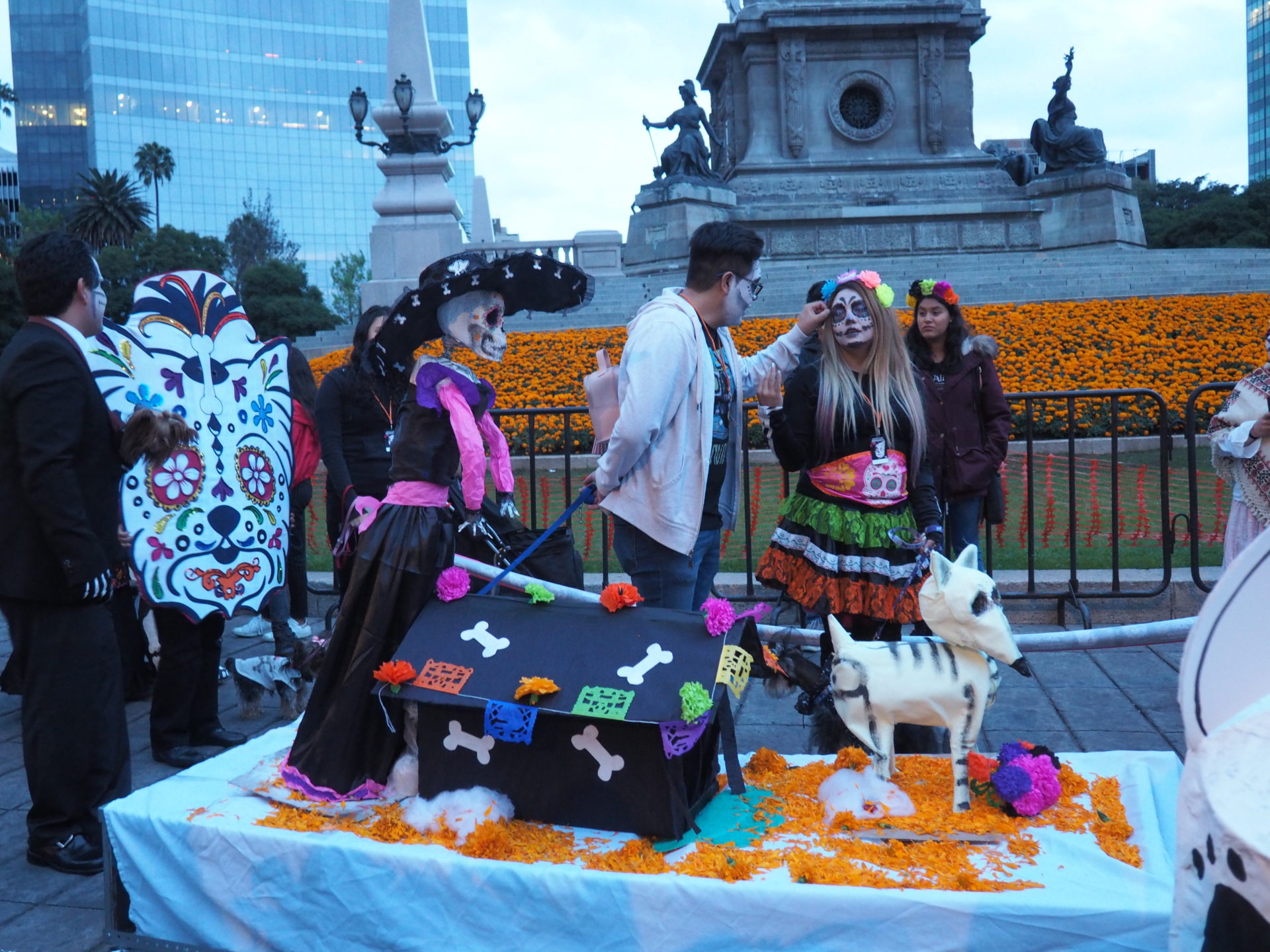 The procession took quite a while and ended near the Palacio de las Bellas Artes. Over there tons of stands were waiting to feed those hungry skeletons.