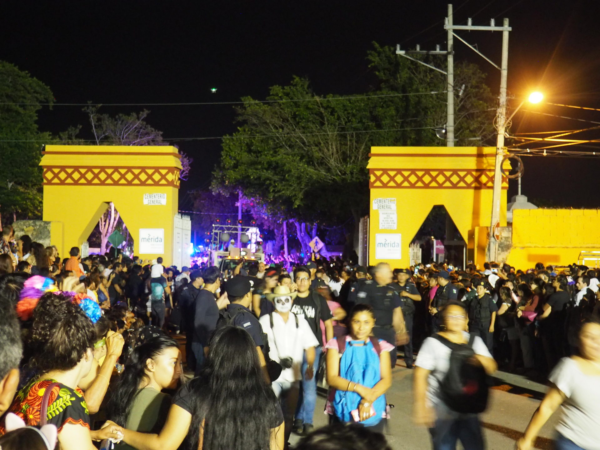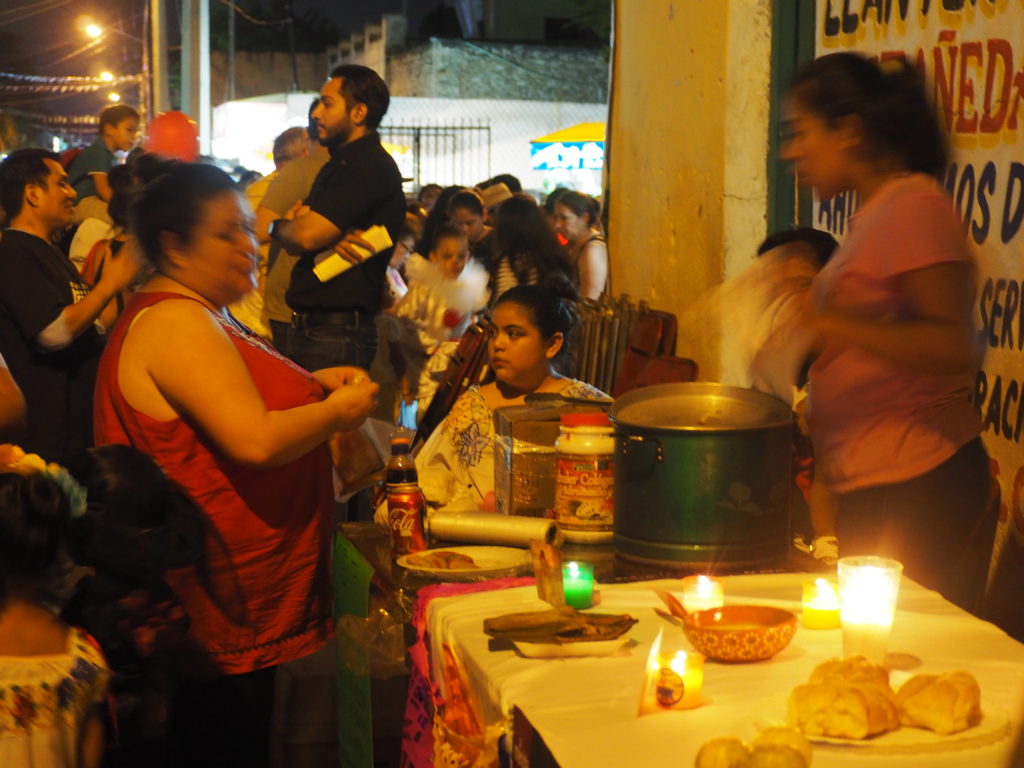 Many locals along the Calle 66, the street that connects the cemetery with Parque San Juan – the ending of the parade – had opened their houses and were selling all kinds of goodies: marquitas (typical Mexican waffles), palomitas (popcorn), popsicles, tamales (a typical Central American meal with lots of different ingredients wrapped in a banana leaf) and of course Mexican beers.