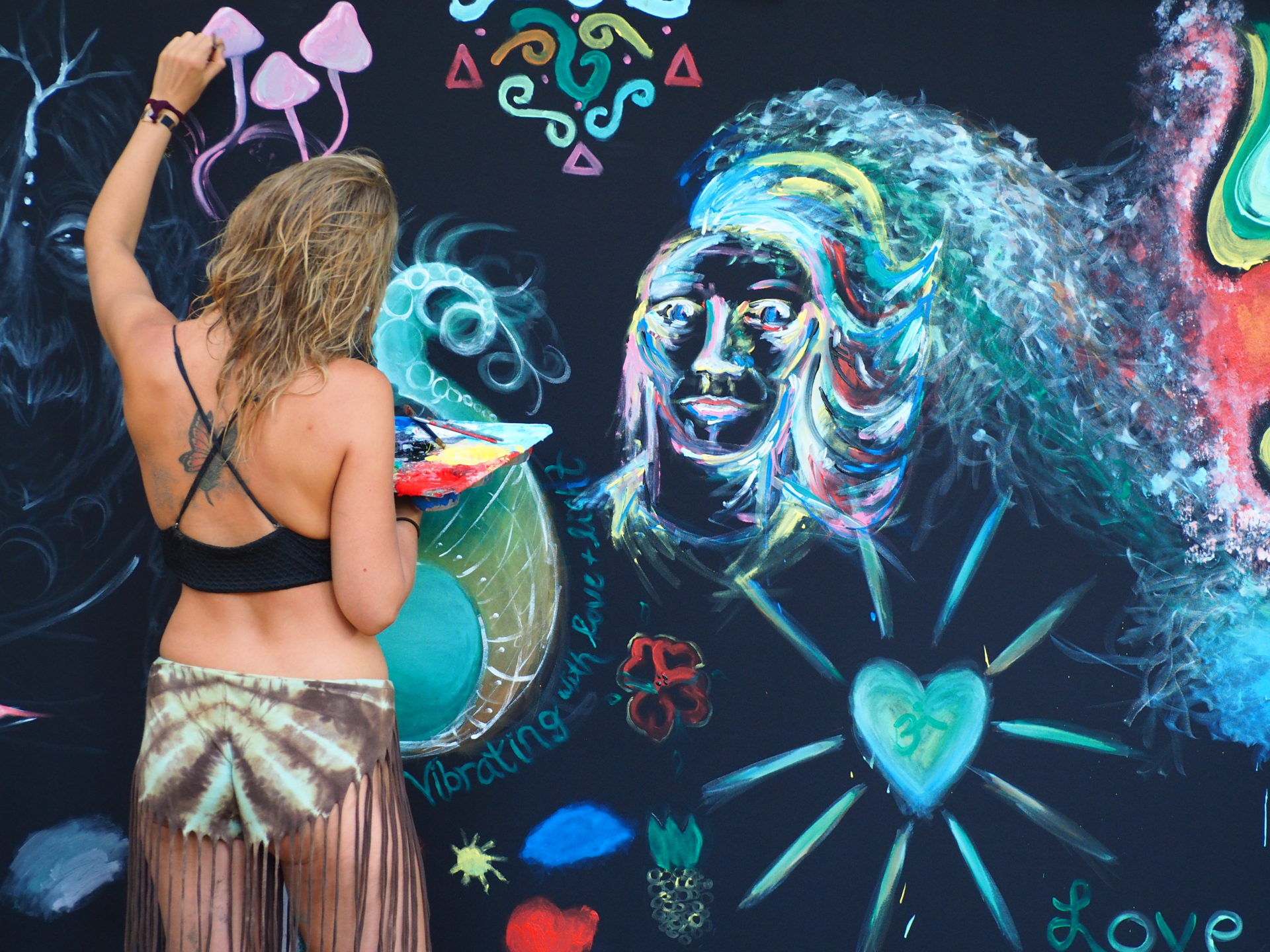 Also, all the food and drinks that are sold at the foodtrucks are organic and locally made. Apart from that, the entire day is filled with workshops and talks that cover topics like permaculture, plant healing, ecological solutions and spiritual empowerment. If you’re more into sweating it out (although just walking around in the heath of the day may cause already enough of that), you can participate in yoga sessions, hula hooping, indigenous dances or other intense workouts. Or you can stick a surfboard under your arm and run towards the sea for a dive.