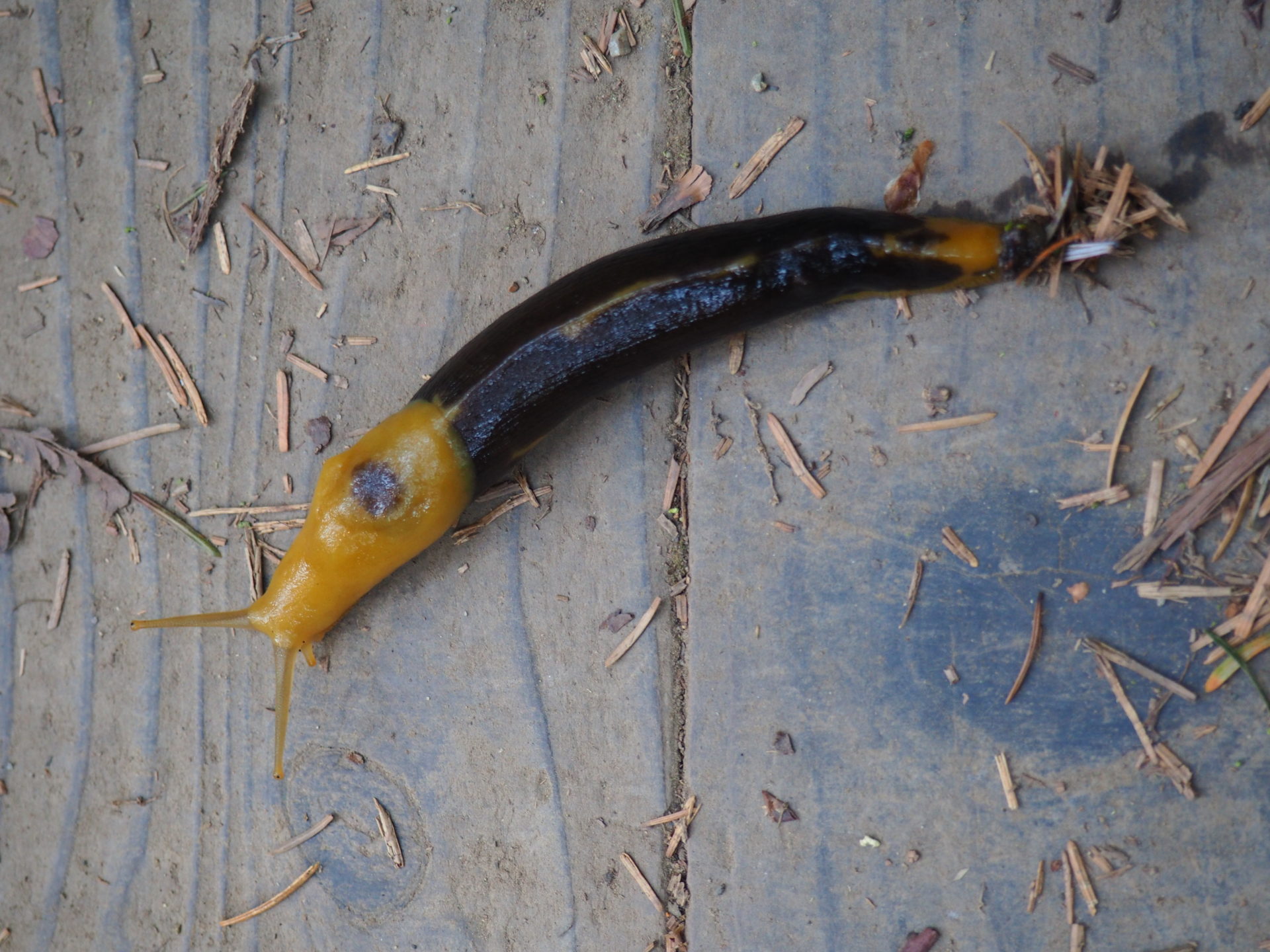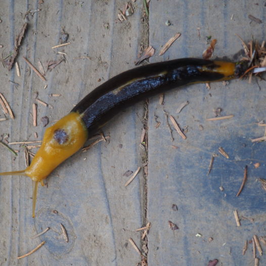 At the time of our visit there was a cougar spotted in this area! How insane if you encounter one of those. The most exciting thing we saw on the other hand, were these yellow / black snails.. ↓