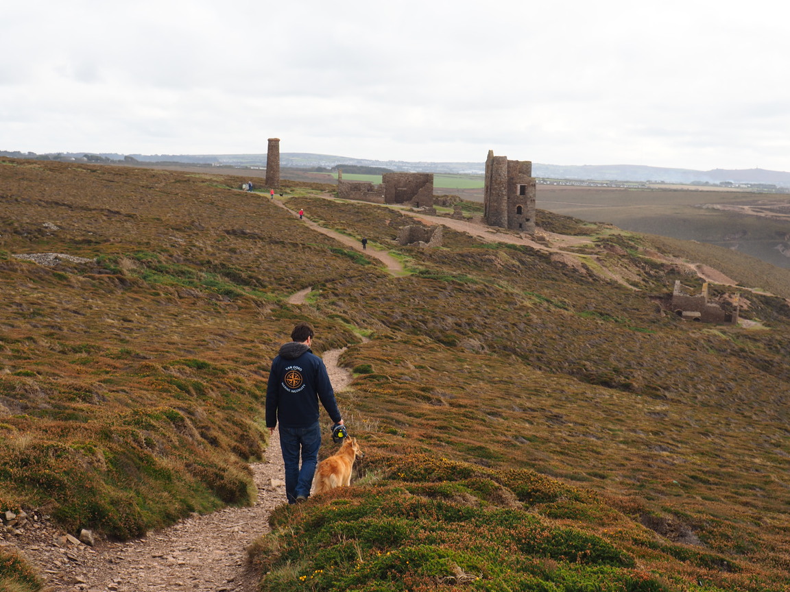 I can’t really recall steep bits along the road, nor steep cliffs. So all in all this for sure was a proper walk for our pooch and me being 28 weeks pregnant. Plus one can find a pretty and small beach along the way for the daily dose of vitamin sea. Chapel Porth Beach is not only famous for its waves, but also for the cafe in the car park that sells delicious ‘hedgehog ice cream’: Cornish ice cream smothered in Cornish clotted cream and then rolled in hazelnuts.
