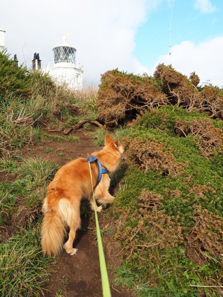 Although you’re up high during this walk, I wasn’t really concerned for Chapo, as the path doesn’t lead to close to the edge. There are plenty of stops where you can take a break and on a sunny day the views are spectacular. Take a small detour to the lighthouse down the road, it’s really tiny!