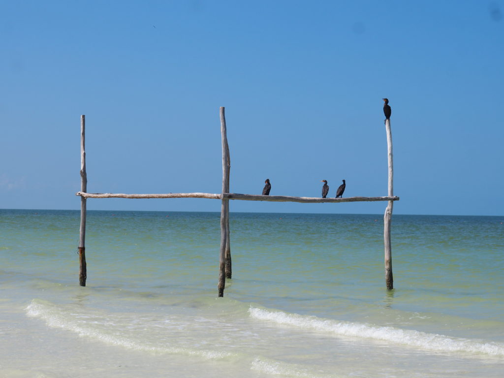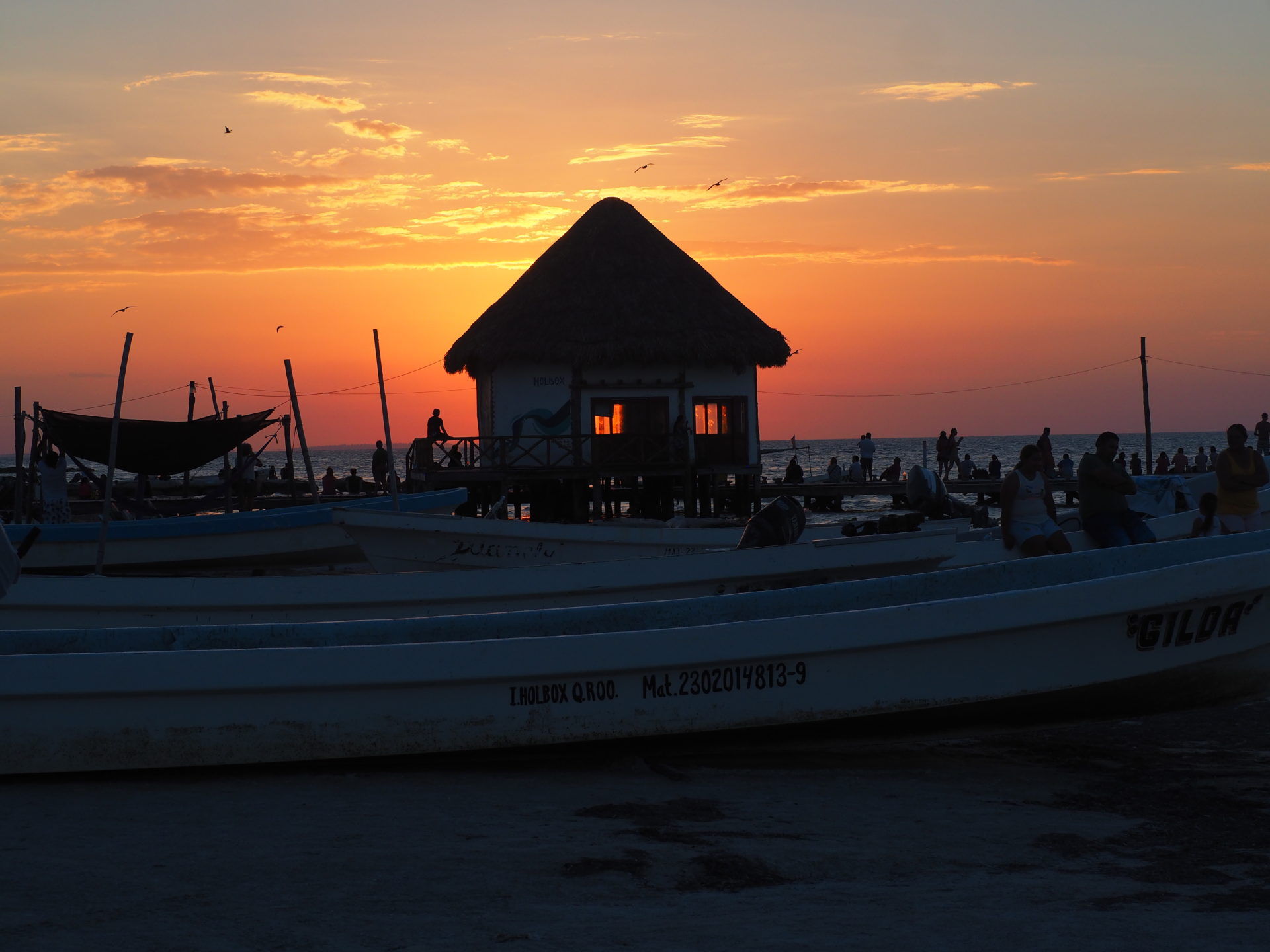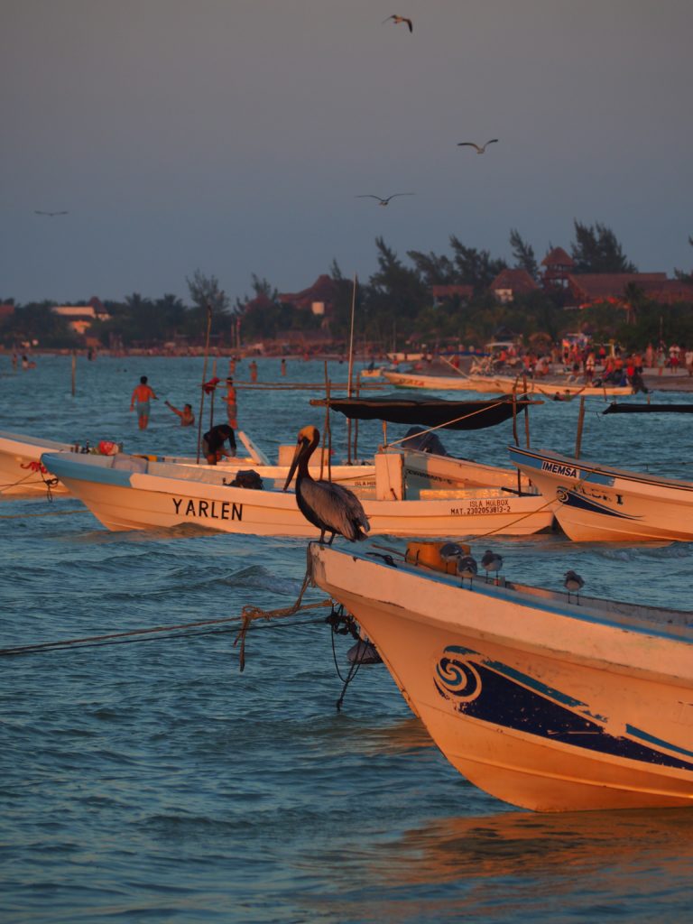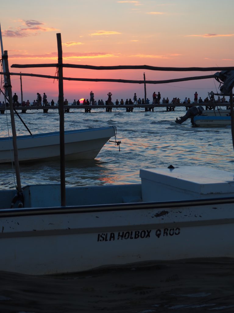 Holbox is basically a small village on a huge and very green island. You won’t find cars and big shopping malls in here (hallelujah), but in return you’ll be rewarded for your journey with clear waters (at one time we could even see a stingray floating 100 meters in front of us!), swing that launch you right into the ocean, a flamboyance if you’re lucky (a flock of flamingo’s – fancy word right?), local seafood shacks where they grill the freshly caught fish right in front of your nose, the bioluminescence phenomenon at night ánd if you’re in the right season you might even see a whale shark. Sounds pretty sweet right?
