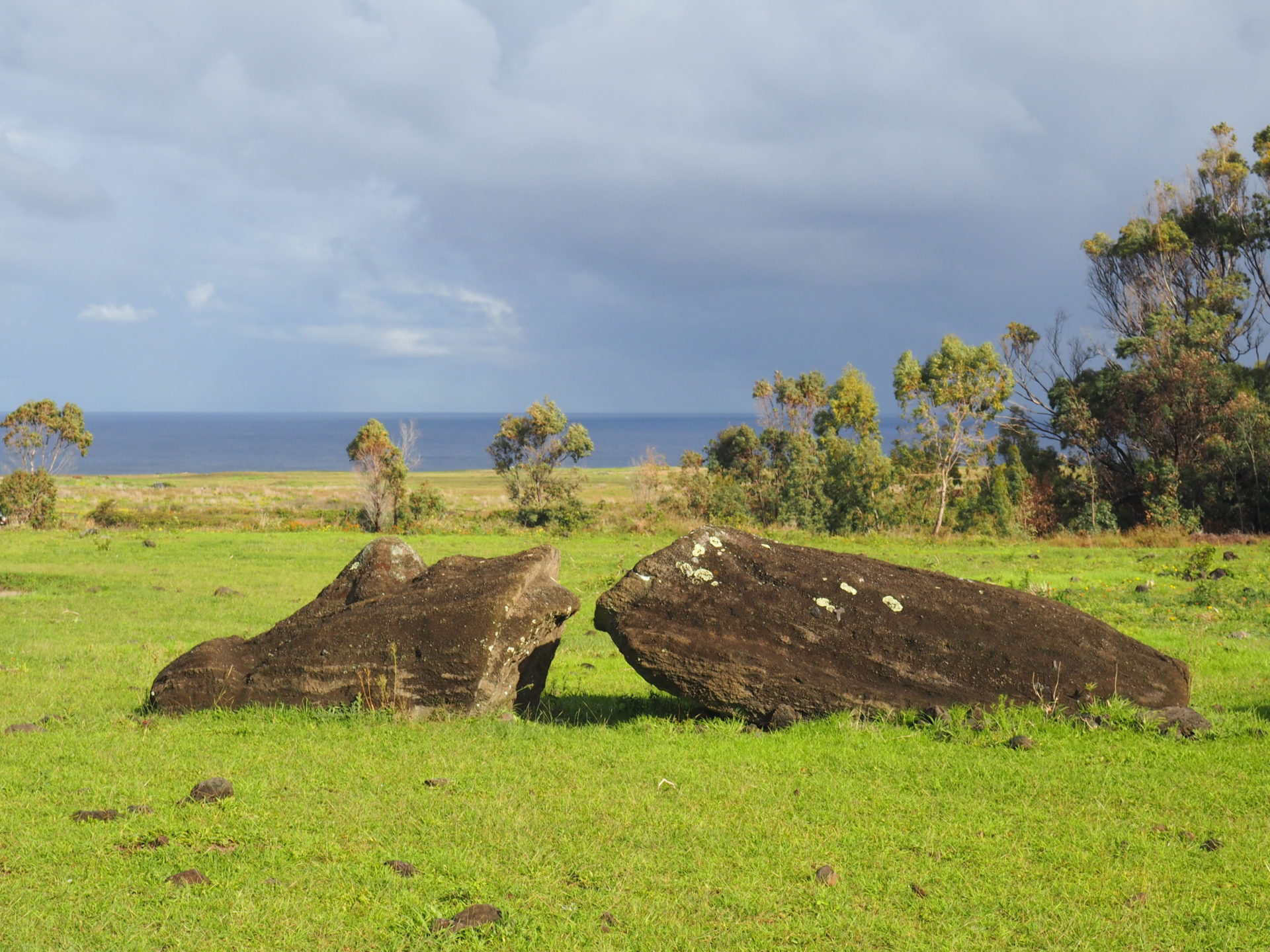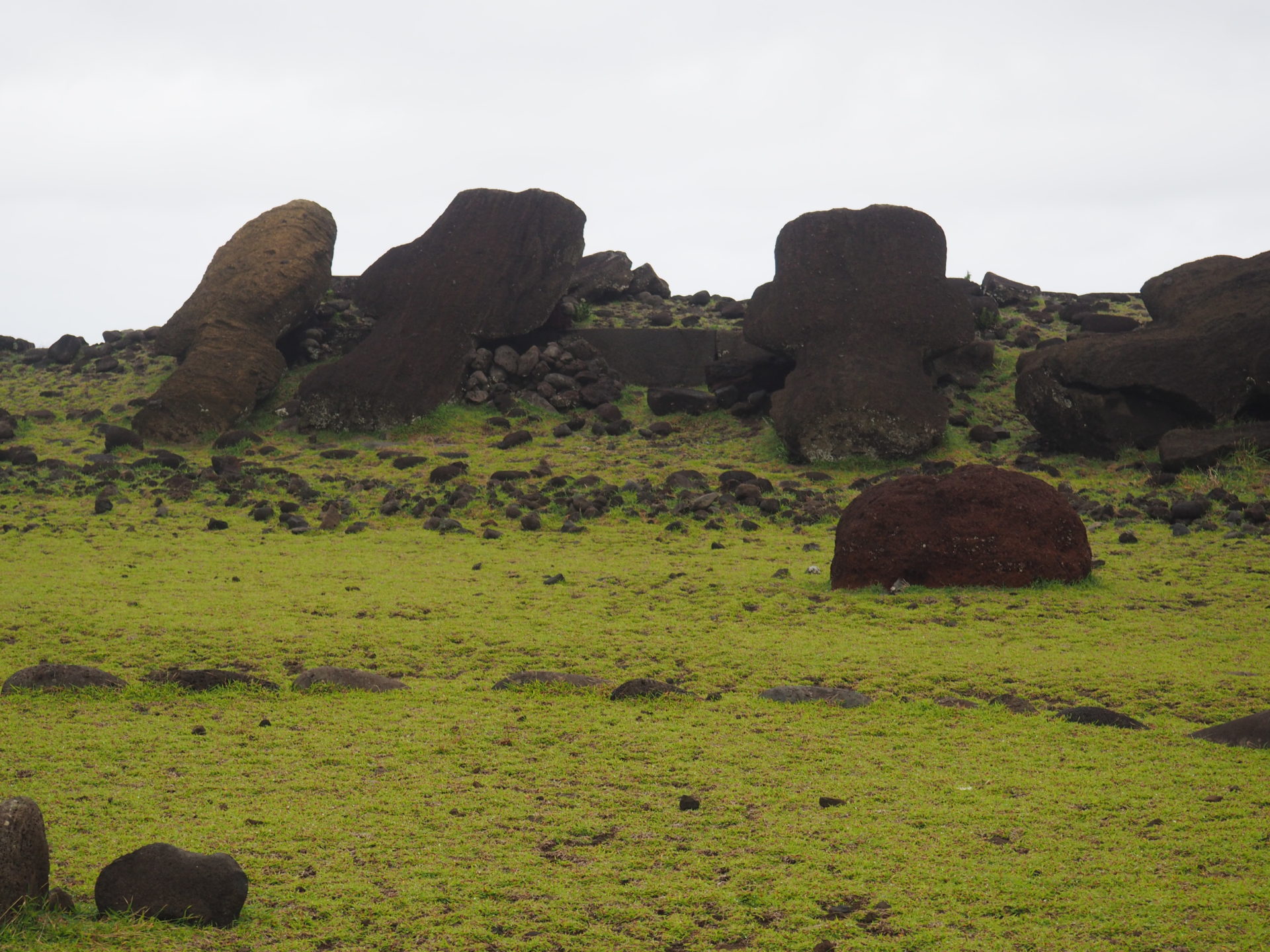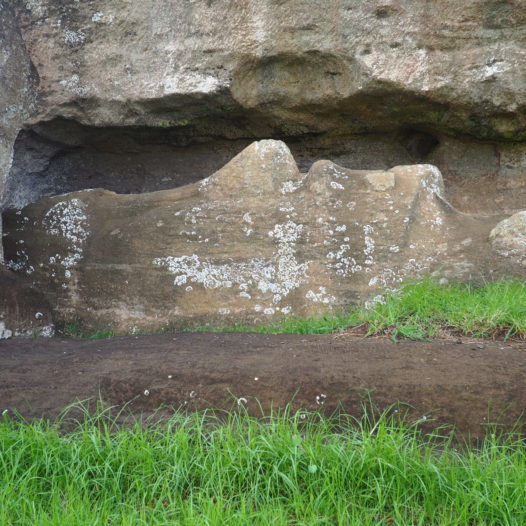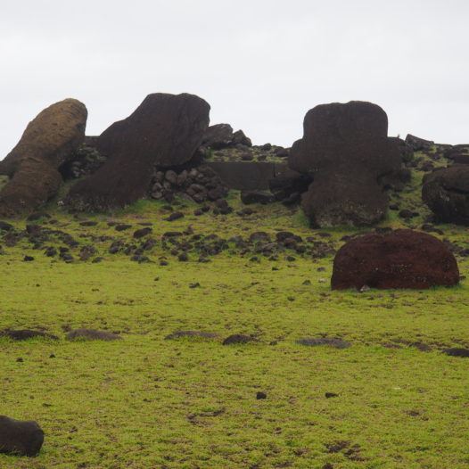 It’s kind of difficult to spot these moai on the eastern road, as they have fallen down flat on their noses. We knew they were supposed to be there somewhere, but it took us two visits before we could finally spot them. Like most of the moai on the island these moai were tumbled during the tribal wars on Rapa Nui.
