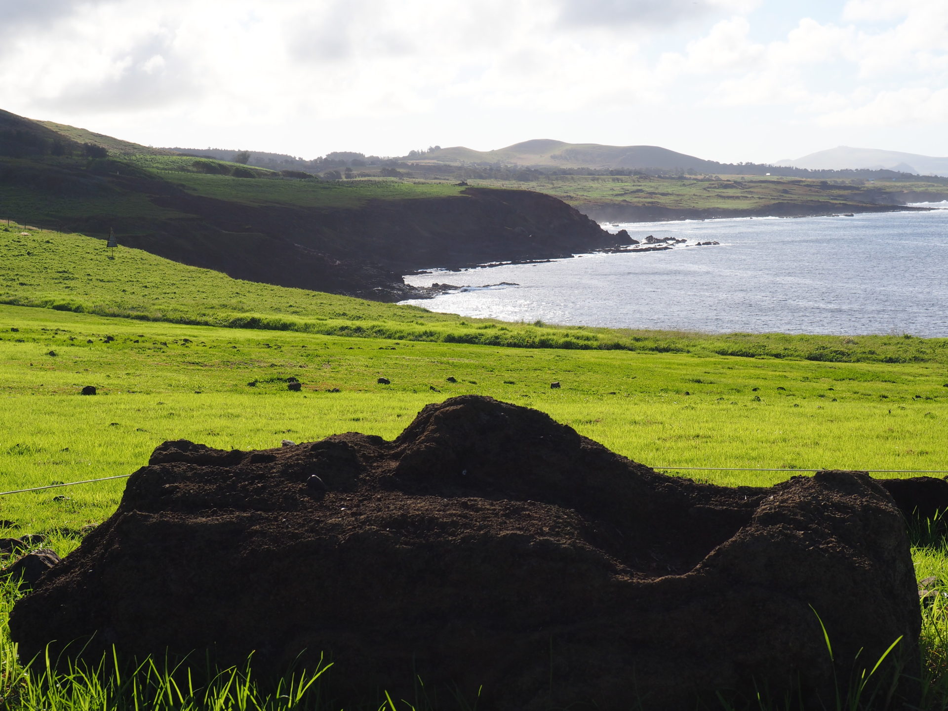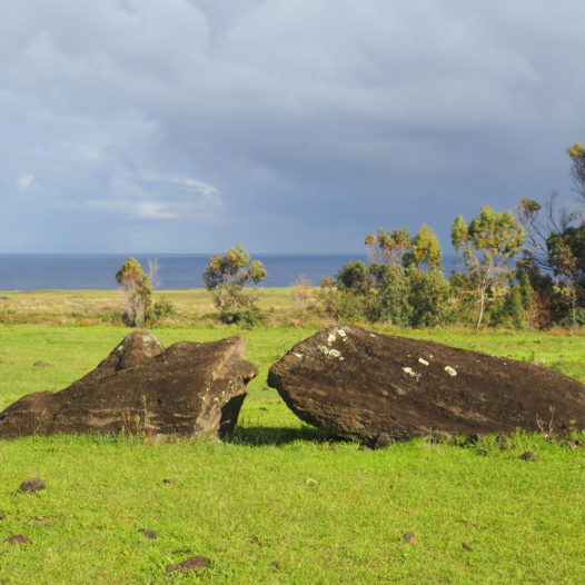 Almost all of the coastal line of Rapa Nui (which is the original name of Easter Island) is rocky and rough, with pieces of land that wouldn’t misfit the coast of Ireland. Therefore the moai often just disappear in the pitch black background. Thus don’t think it’s always easy to spot them. This is especially true because many moai have been toppled during the tribal wars.