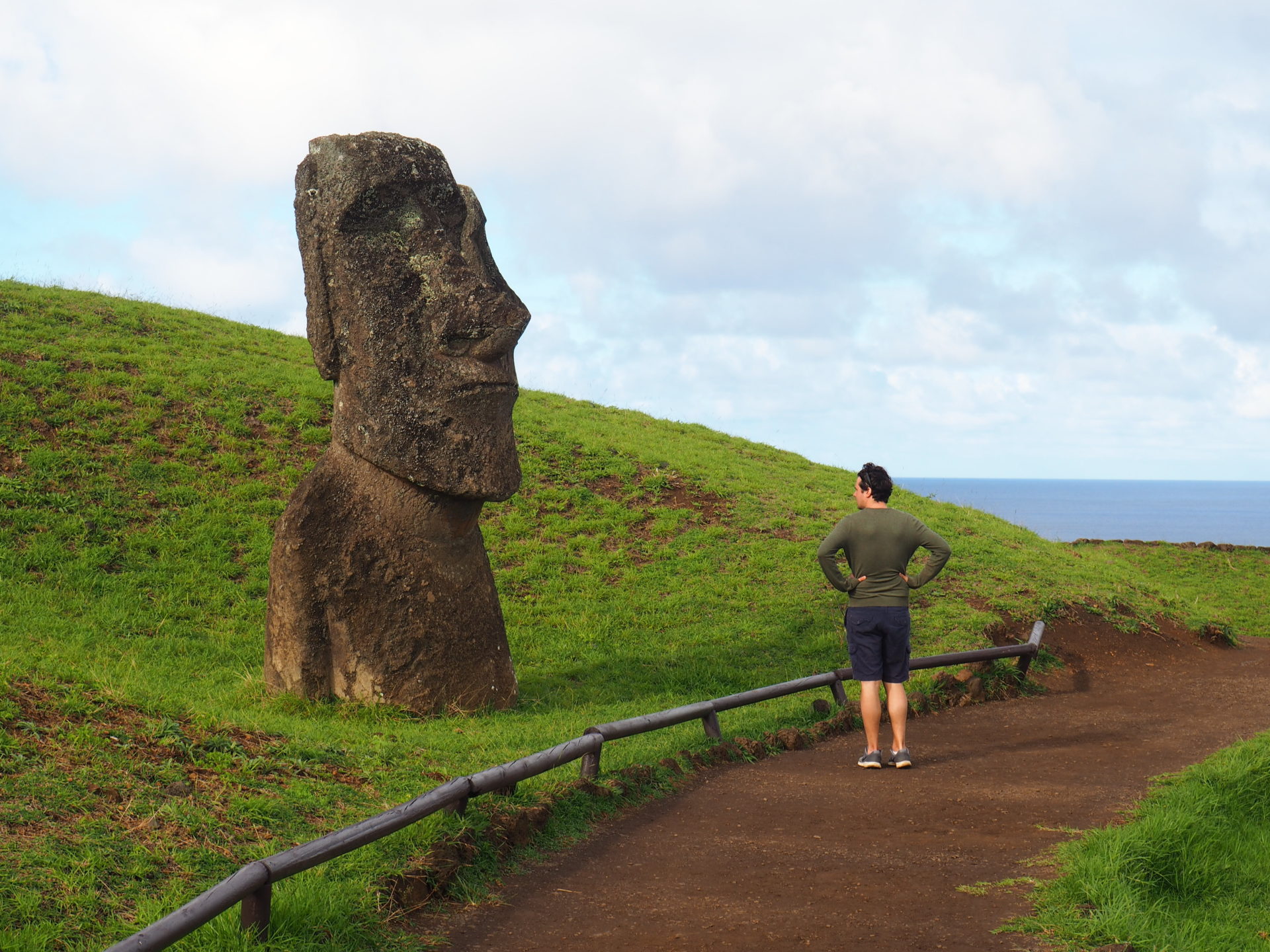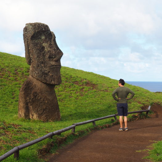 A little bit to the left of the eastern coastal road you can find Rano Raraku – a remarkable place on Easter Island. I mean, the island itself already is extraordinary, but as you enter the quarry of where it all began – that is, where all of the moai carving on this island took place – it’s like you’ve entered another world.