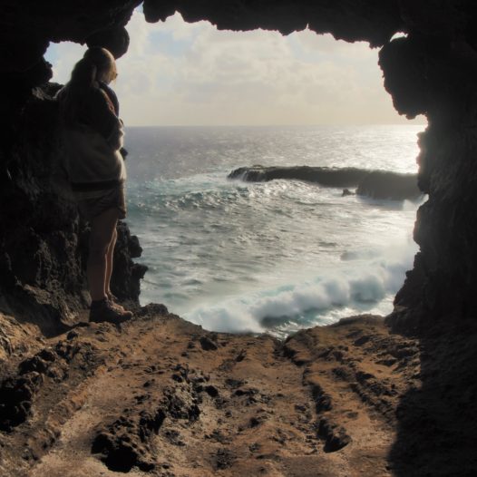 After that bit the cave widens out and as you walk through the volcanic tube, you can see the two big holes from where the lava used to flow into the sea, really insane!