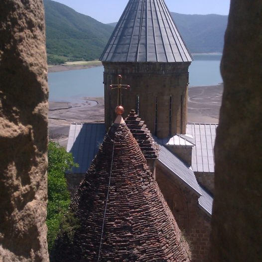 The surroundings of the hill above and the turquoise Zhinvali reservoir below are very pretty too. The chapel itself is still in use by the locals, so be appropriately dressed for it (head, shoulders and knees covered as everywhere in Georgia). The place is recommended to UNESCO and included for consideration.