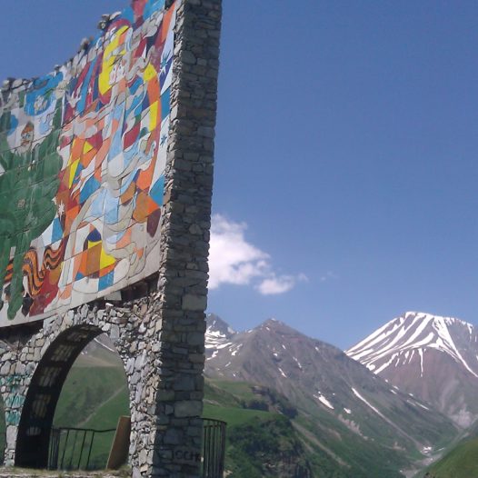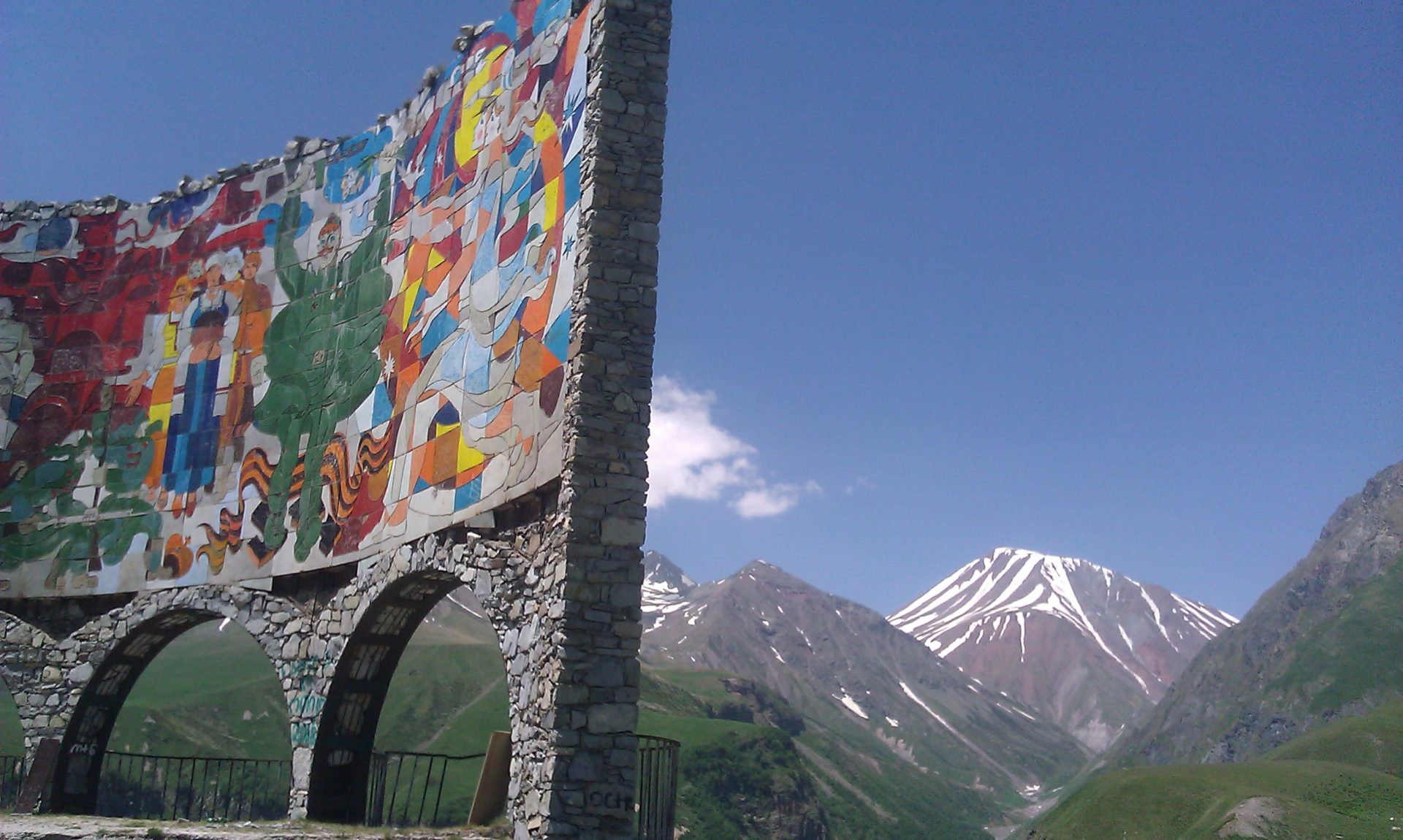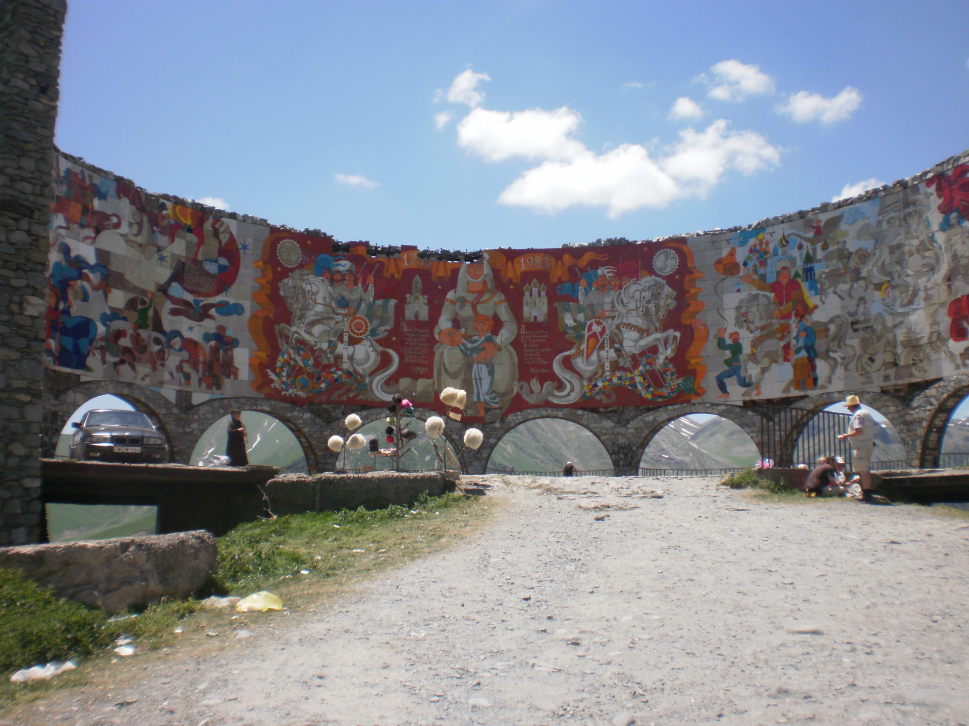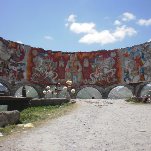 Before you know, you encounter one of the weirder monuments in this world. Although the relations between Georgia and Russia haven’t been warm in particular throughout history – and especially the last years – the Soviets established in 1983 a remarkable, mosaic, half-round, concrete mural between Gugauri and the Jvari pass: The Russian Georgian Friendship Monument. For me seeing the monument was even more ironic, since I couldn’t even get into Russia at the time.
