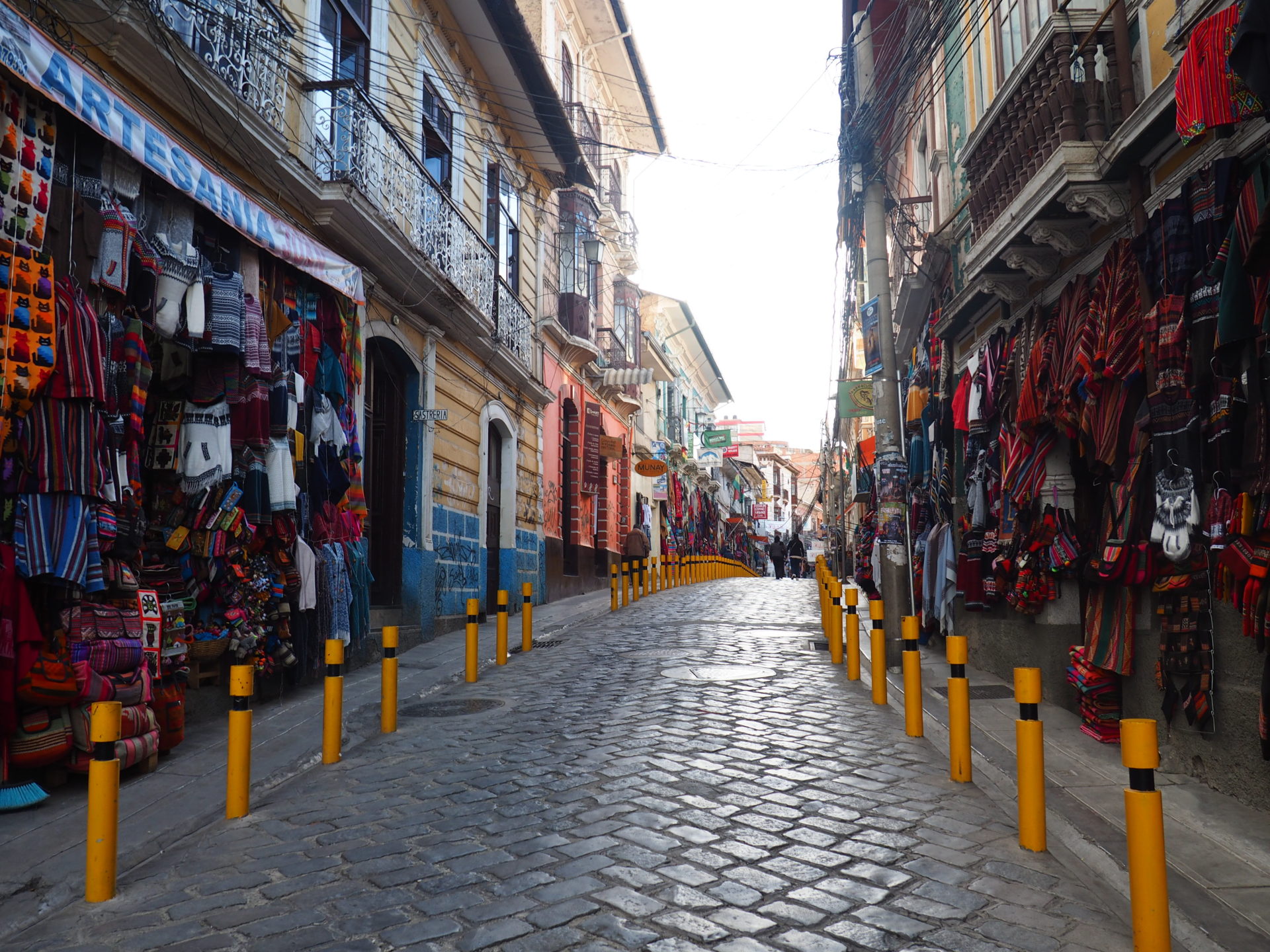 The best shopping streets are located close to the Witch Market. Just continue the street on Linares and don’t forget to swing by the street of Sagarnaga either. It’s basically the same stuff you can find in Peru, but just a tad cheaper although I also noticed it really depends on the product. Perhaps you want one of those fluffy teddybear llama’s for example? Those are for some reason cheaper in Peru.