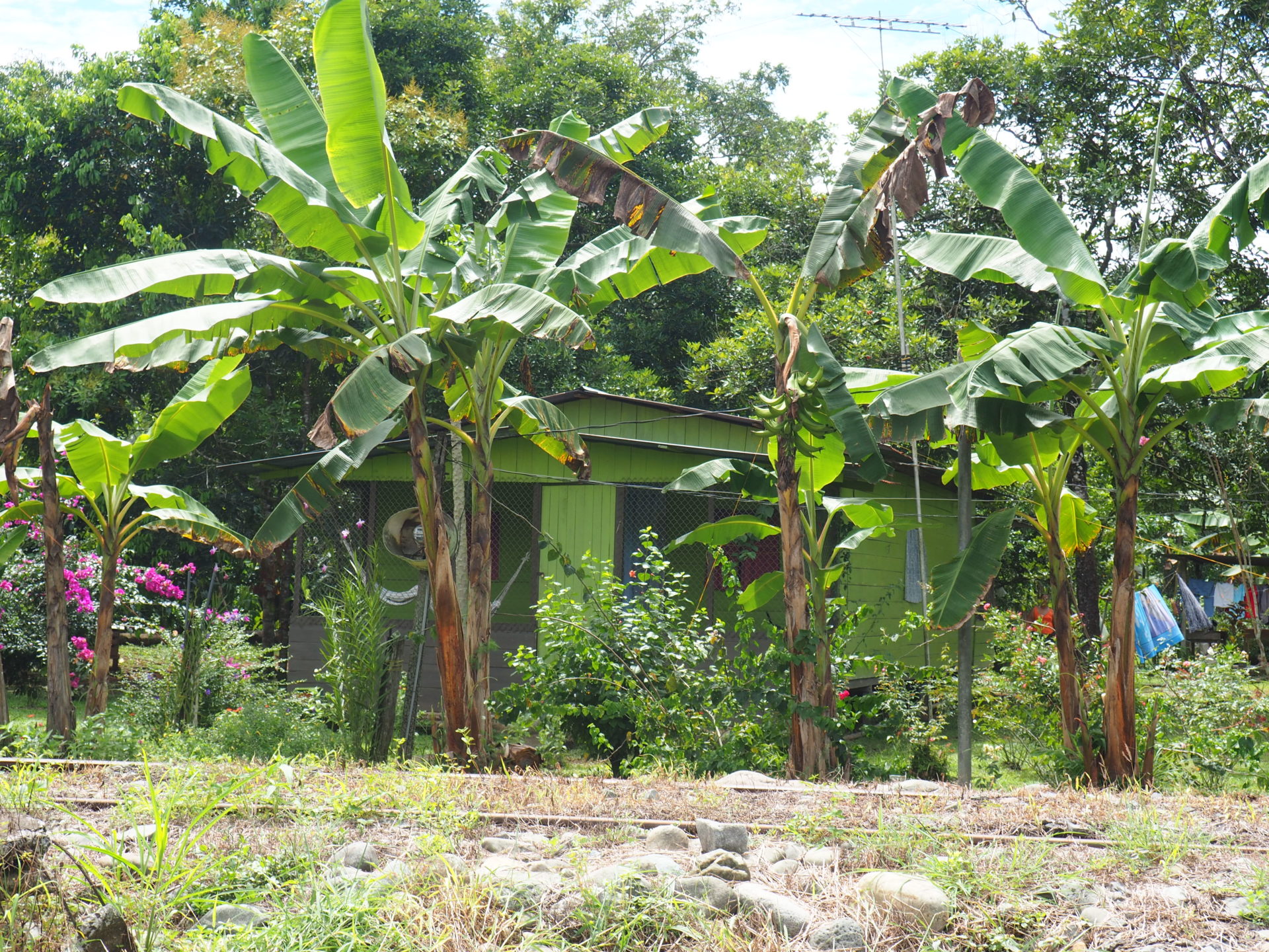 As charming as the little houses beneath may look, life in the fields of Costa Rica is pretty tough. Behind the lines of the touristic and laidback towns such as Cahuita, Tortuguero and Puerto Viejo and between the majestic mountains of Talamanca lay enormous acres of flat land. On it one can find the ever growing pineapple and mango plants and banana trees shining in the sun. Tourists barely know of the existence of these fields.