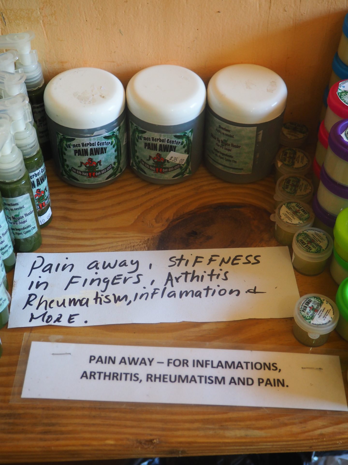 Her herbal shop is quite big and stars a lot of ‘medicines’ for all kinds of issues. Think of back pain, fungus or arthritis. In between her other duties, Aurora sneaked into her herbal shop where I was browsing through the shelves and told me a bit about the herbs that could help me out regarding my stomach. On top of that she said she needed to feel my stomach and give it a massage to better address the problems.