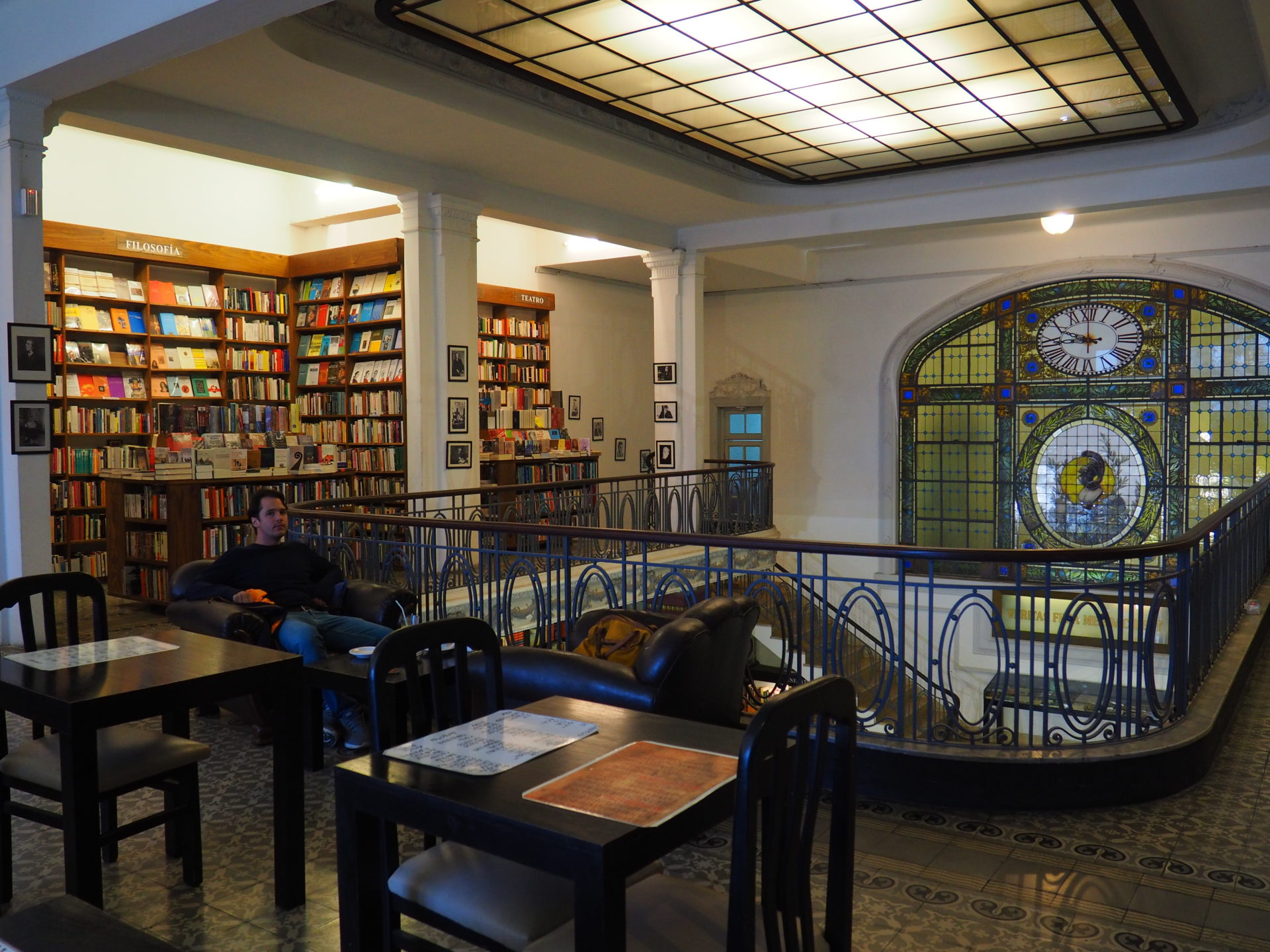 The bookshop could be listed on one of those ‘most beautiful bookshops in the world’ list. The building is art-deco and the staircase leads to gorgeous stained glass windows. The open steel elevator is the oldest one in Montevideo. And it’s not all about the looks, thousands of Spanish books can be found in between.
