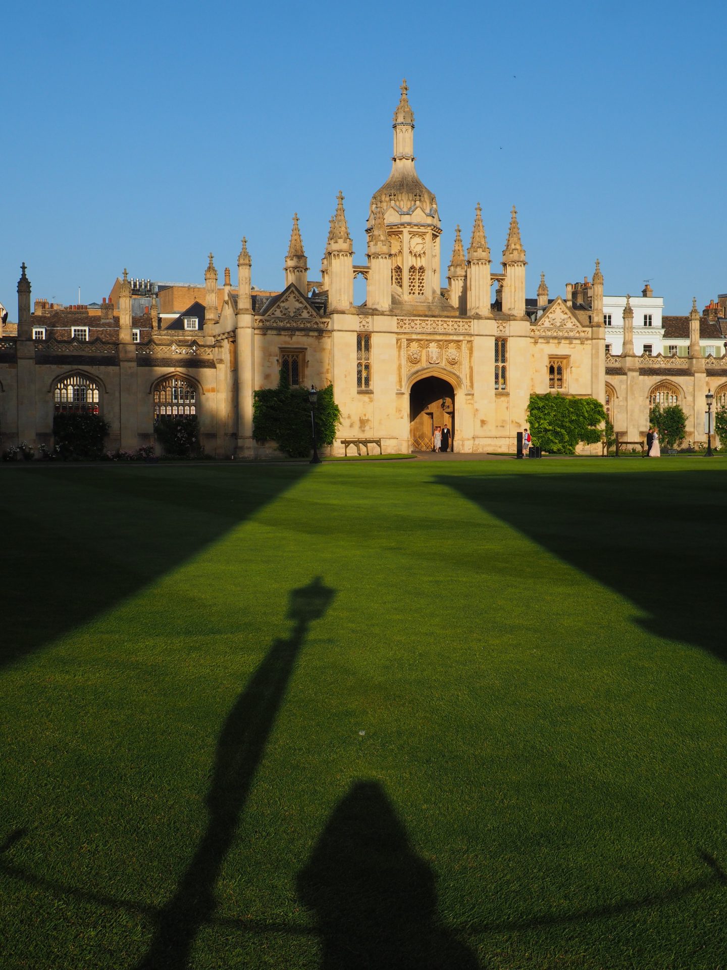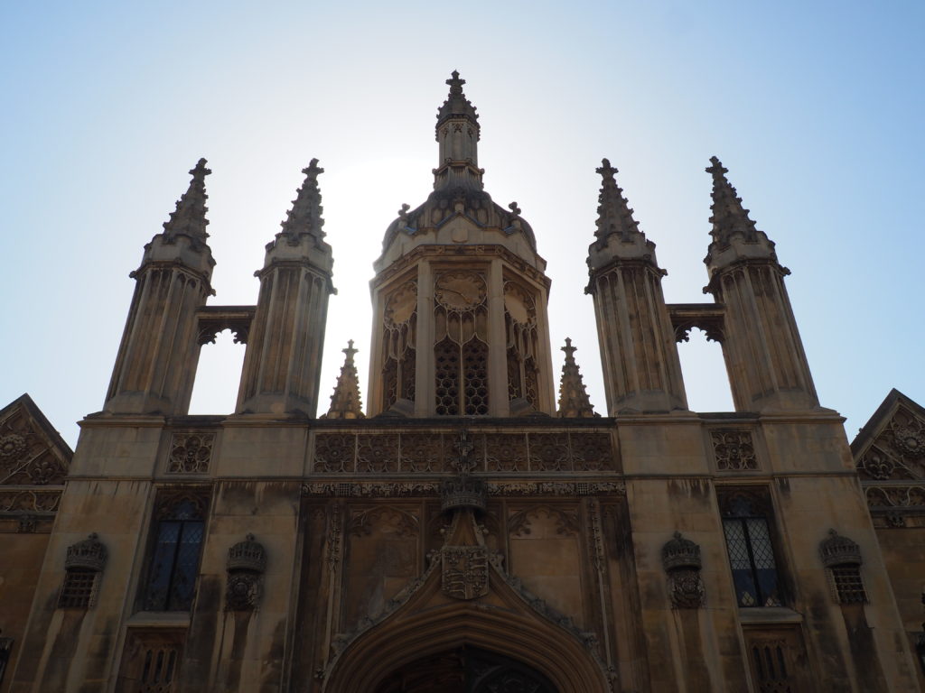↑ A settling sun right behind the King’s College Porter Lodge