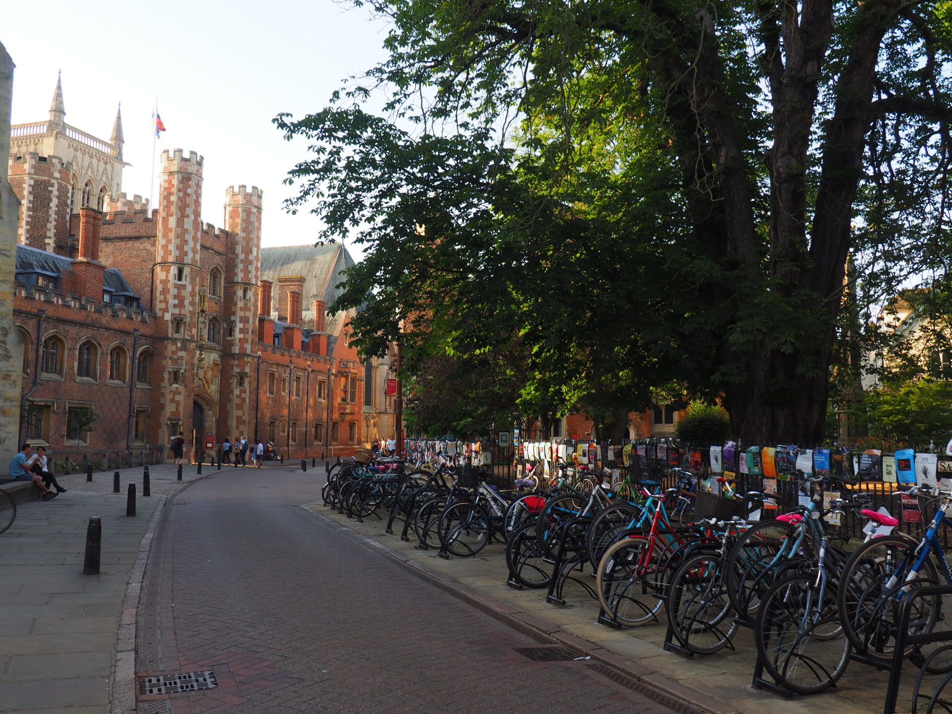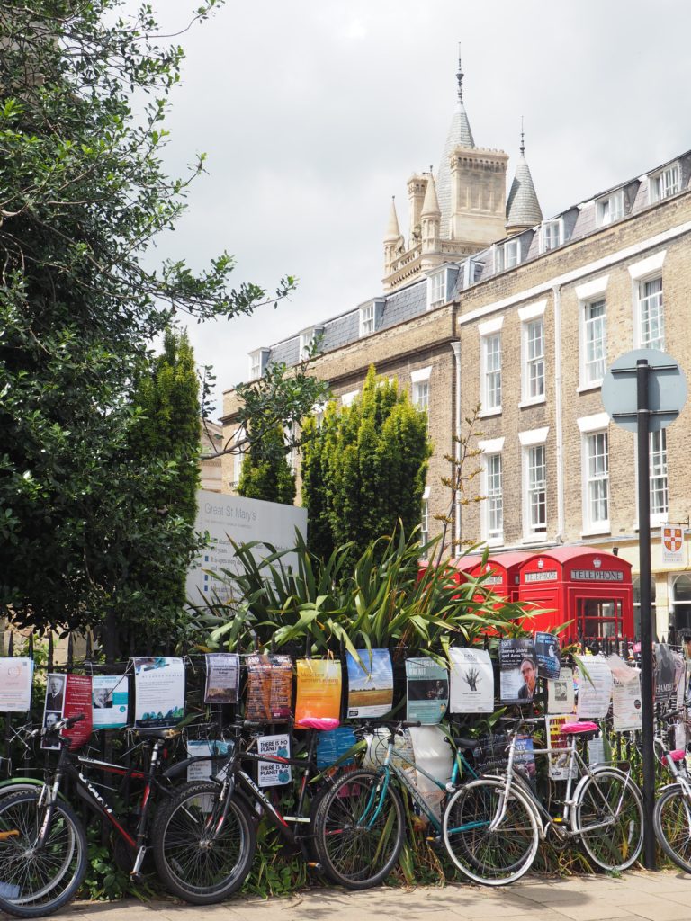 ↑ Very typical Cambridge-like view (bicycles and posters) with the towering Gonville & Gaius College in the back