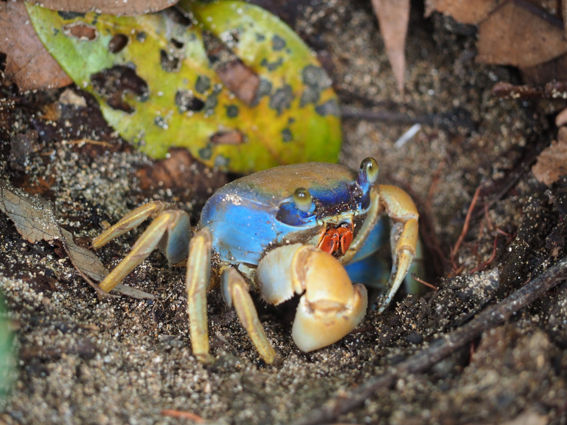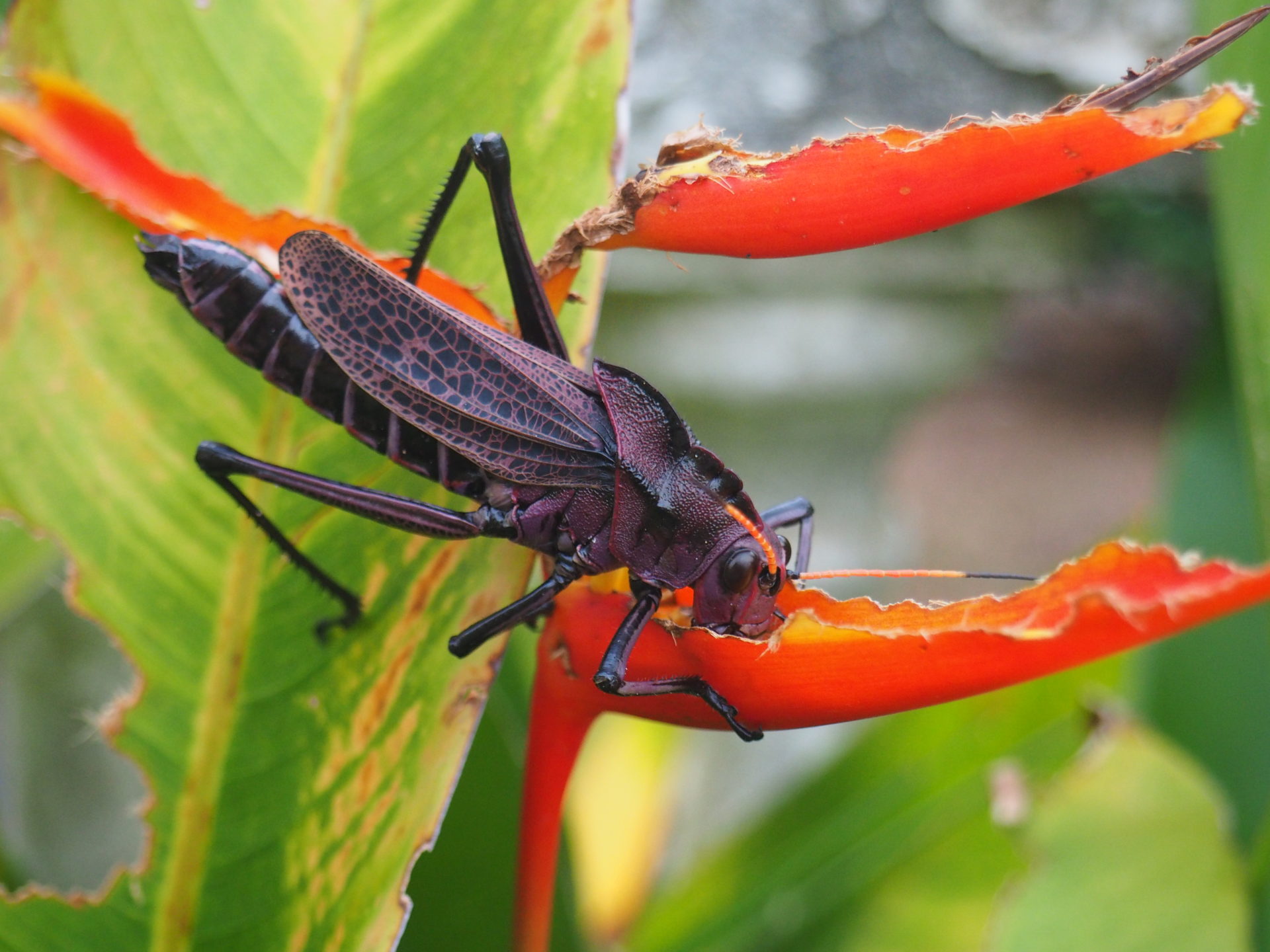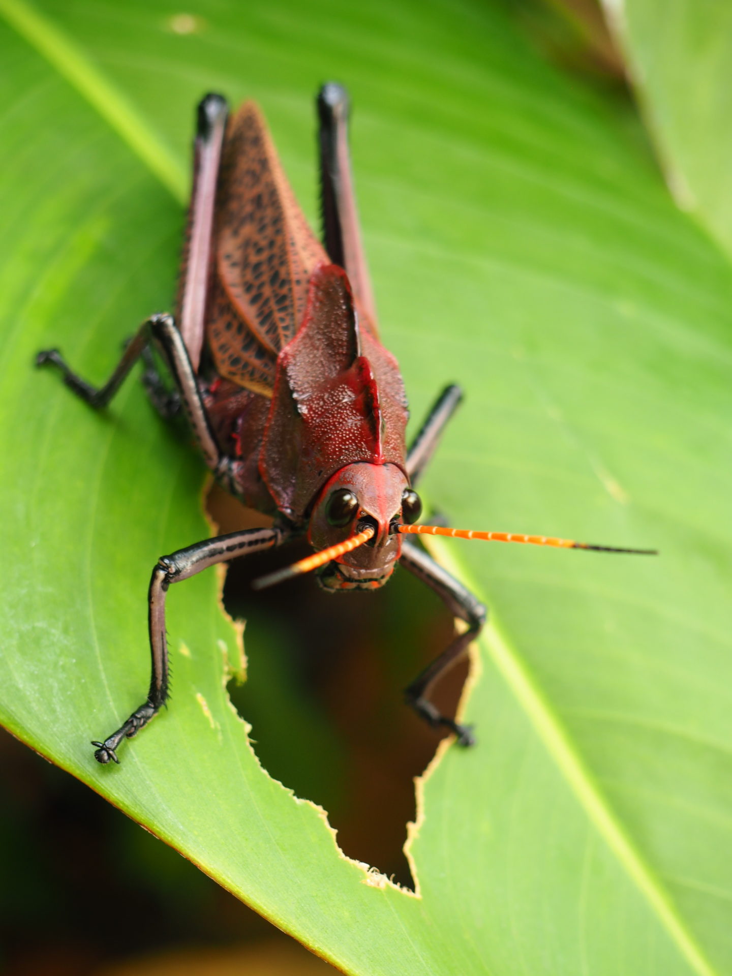 A tiny poison dart frog. They come in many form, but this one is in my view the weirdest. Seen in CahuitaTaeniopoda reticulata or purple grasshopper. They come every year around April. I can still remember the first I encountered; they are enormous. Currently our garden is swarming with them. They don't do nothing really, except for chilling and eating leafs. Here's one drinking; funny enough it's even holding the heliconia flower firmly. Seen at home in LimónAn anteater, a very cute and special mammal. Snapped in CahuitaWe found this yellow spider in the jungle of La Amistad. Our guide had not seen such a thing before either I've absolutely no idea what this creature is. It looks a bit like a chameleon, but different. Its eyes were alien like scary. Found in the forest somewhere behind DominicalSince its head looks like a snake it was a bit of a scary moment when we encountered this enormous frog in Manzanillo. Later when I showed the picture to a guide he said it was a bull frog, but I'm not sureThe blue crab. Found in Cahuita National ParkAlright, so caterpillars aren't that special, but this fellow was just enormous. I think some 25 centimetersThis insect has disguised itself as a leaf, smart!Ahh yes a sloth. But aren't those three toed ones weird? I mean look at it!A treesnake, a very gorgeous and curious fellowThe purple grasshopper again, couldn't resistA lizard this time; but a very remarkable one. It's body is toned with different kinds of greenAnother caterpillar; with its furry back it looks a bit like a piece of mossLizards; not very special, but some of them are just so so tiny! This one for example. Caught at home in LimónLook at that face! Seen in Cahuita National ParkI nominated this crab for the list since they only have one big claw, the other one is tiny, so strange A yellow pitviper, very pretty and poisonous at the same time. Found in ManzanilloPufferfish. Found this fish in the Bahia de Salina on the beach. Another glass like animal. This dragonfly was spotted in CorcovadoThose little dragons. I've seen so many iguanas in Costa Rica, but this one was the most interesting of them all. Seen in Rio CuartoAgain not so special you'd think perhaps. But this creature was about 20 centimeters, so quite scary! Seen in San VitoBit of a lousy picture, but look at those 'looking through' wings. Found in La FortunaHermit crabs. Seen in ManzanilloAnother weird bug. Seen in CorcovadoThese are the most beautiful lizards, with a very blue tail. Seen in CahuitaThe fattest lizard ever. Found in Valle de DotaAnother pufferfish on the beachAnother yellowish spiderDragonfly with gorgeous wings
