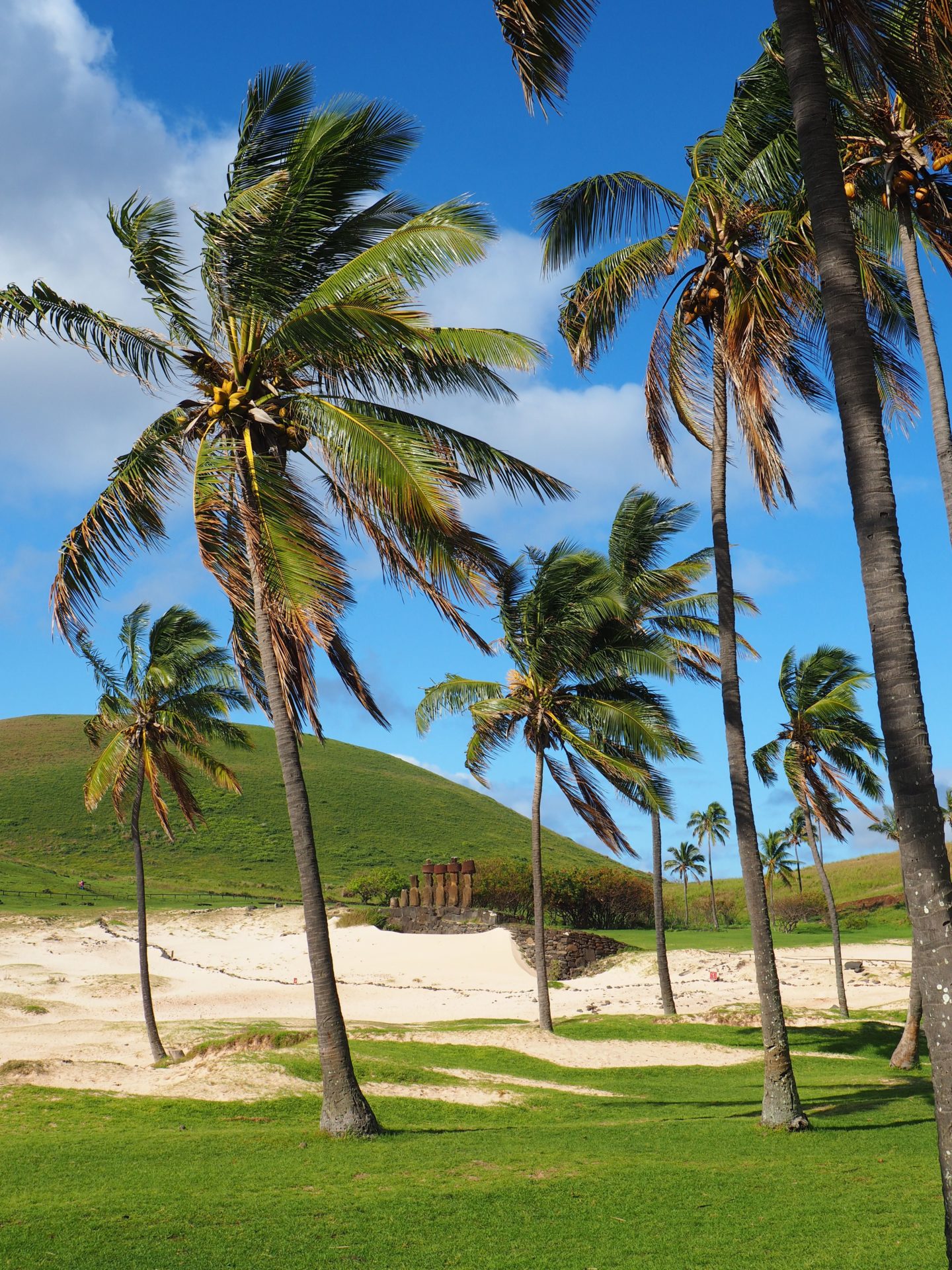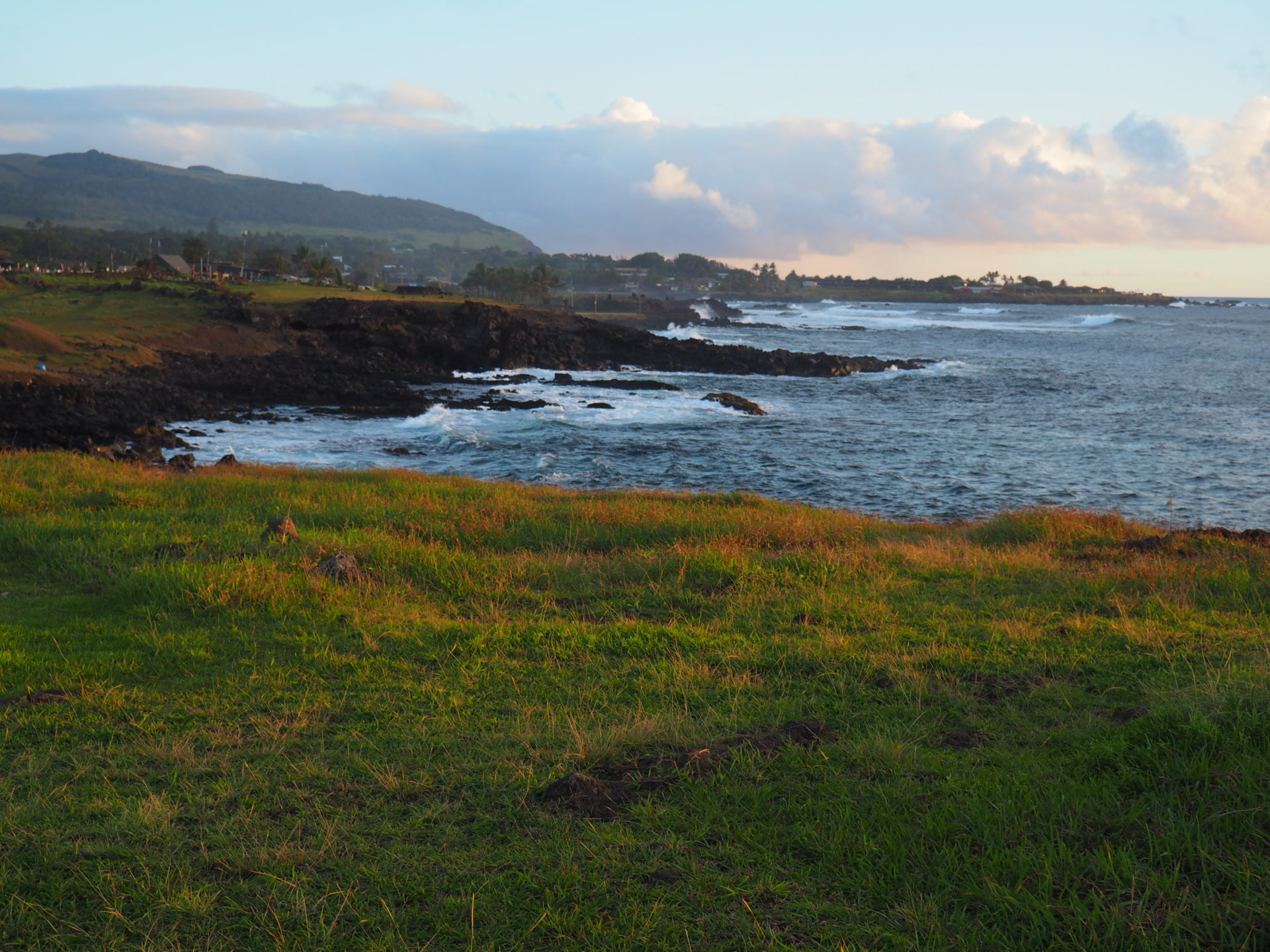 We arrived from the lip-chapping cold of the Andes, skipped a night due to our stopover in Santiago and the long flight to Hanga Roa and on top of that I still felt that wine of the vineyard tour in Mendoza hanging around in my head – so all in all the sunshine and that tropical climate with its accompanying flowers and a Polynesian necklace upon arrival made for a pretty neat welcome.
