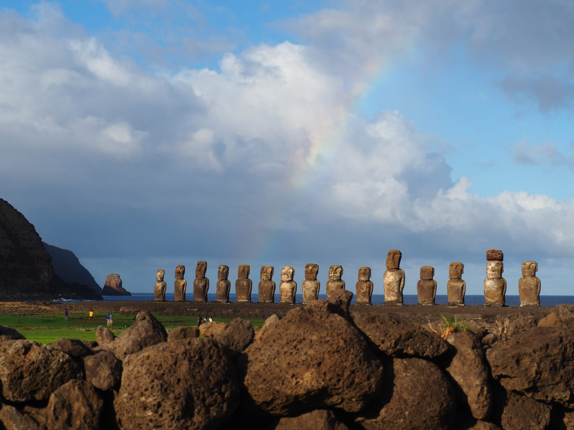 So have a look upon Rapa Nui – I selected our best photos for you in here! Lava tunnels, sacred volcano craters, tropical flowers, wild horses, Polynesian petroglyphs, dreamy sunrises, the little town of Hanga Roa, a pristine beach, rainbows, a bit of wildlife and of course an enormous amount of moai; it’s all in here!