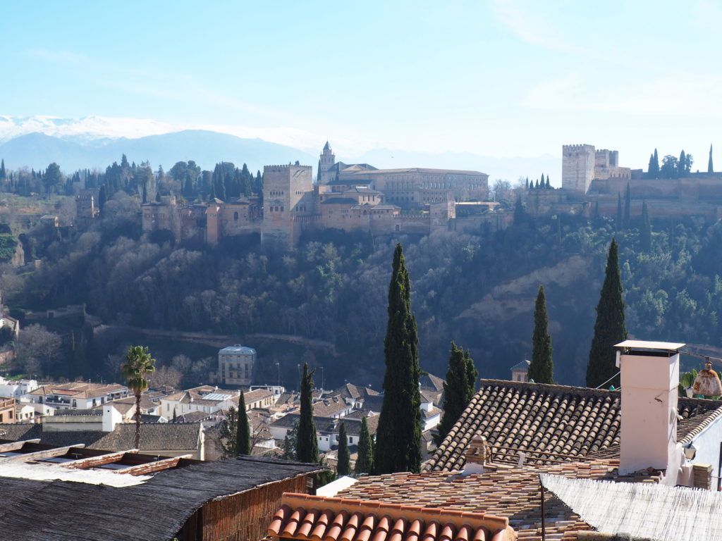 View on the Sierra Nevada, the backdrop of the Alhambra ↓